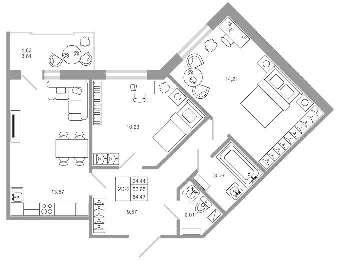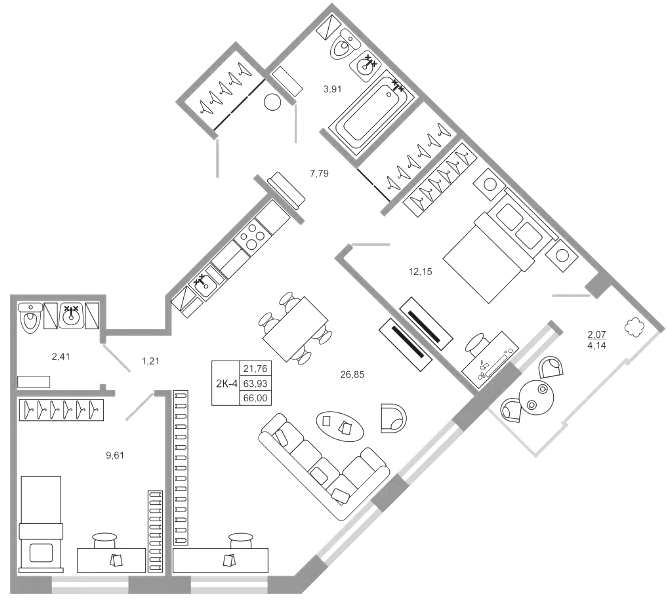 Двухкомнатные квартиры (37 квартир, 6 планировок)