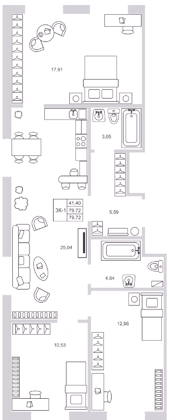 Трехкомнатные квартиры (15 квартир, 2 планировки)