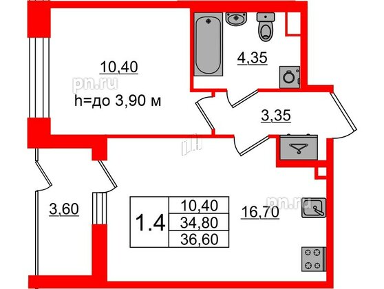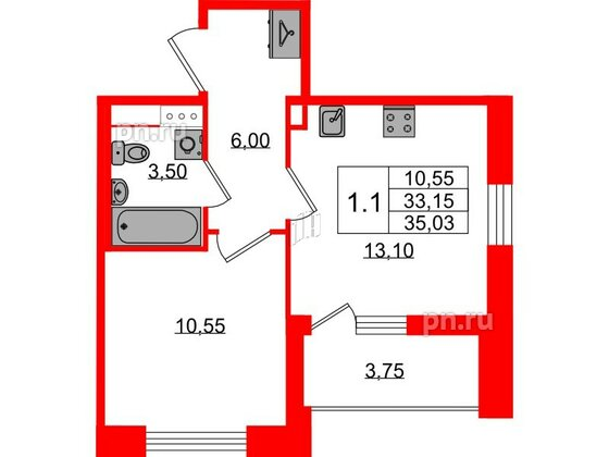 Однокомнатные квартиры (3 квартиры, 3 планировки)