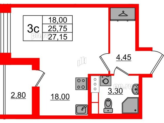 Студия (3 квартиры, 3 планировки)