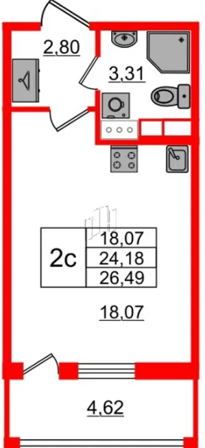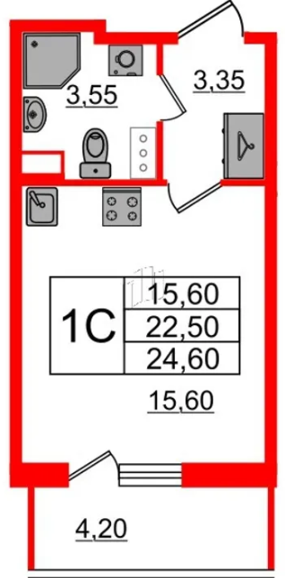 Студия (12 квартир, 11 планировок)