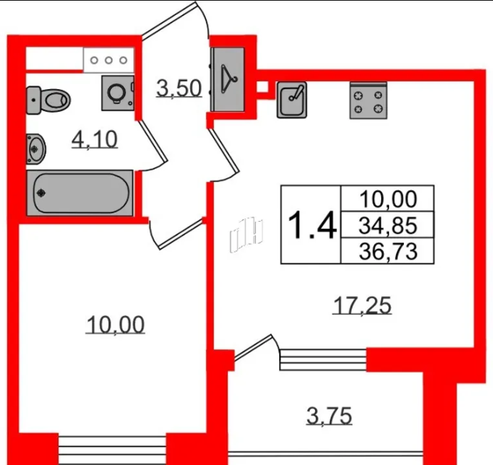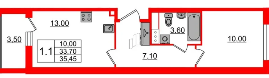 Однокомнатные квартиры (16 квартир, 14 планировок)