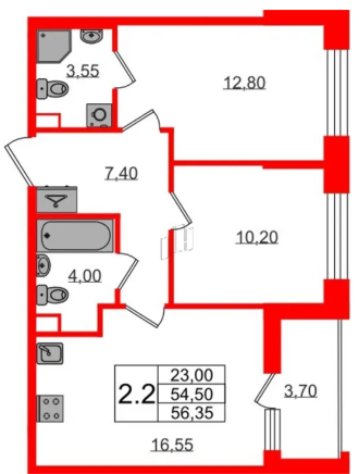 Двухкомнатные квартиры (9 квартир, 9 планировок)