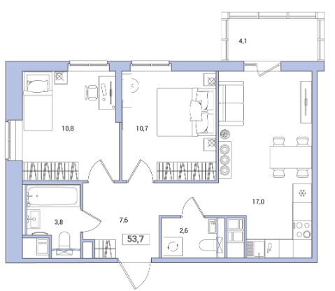 Двухкомнатные квартиры (6 квартир, 6 планировок)