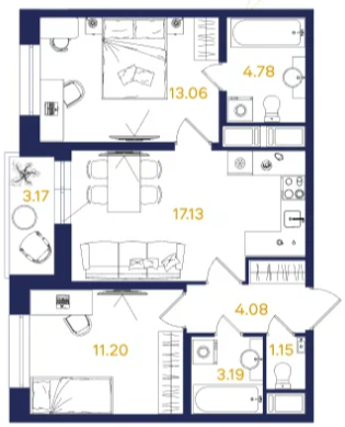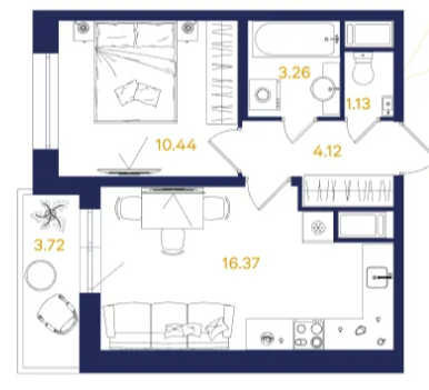 Однокомнатные квартиры (2 квартиры, 2 планировки)