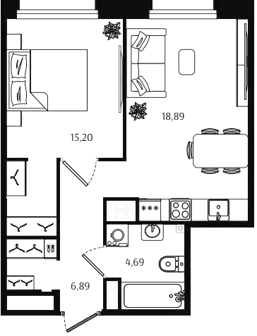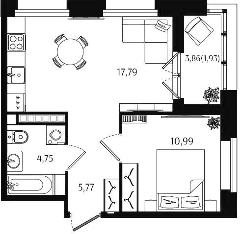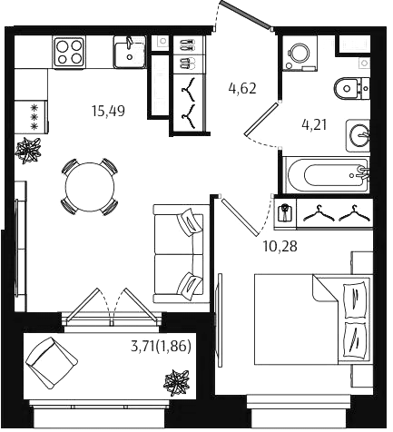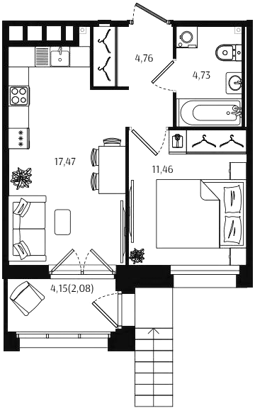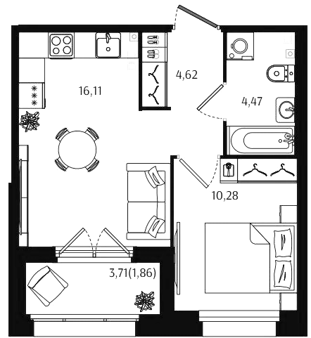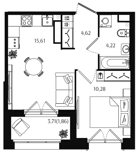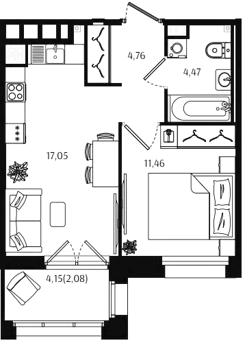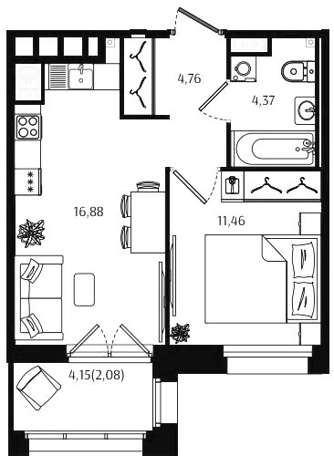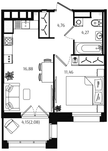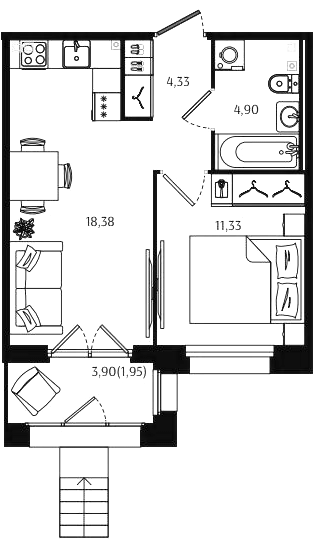 Однокомнатные квартиры (56 квартир, 53 планировки)