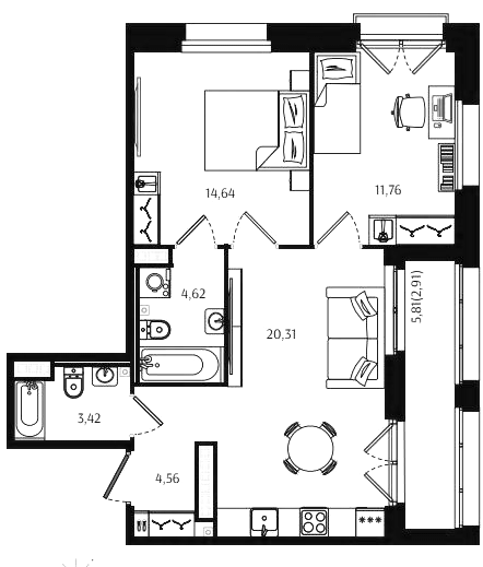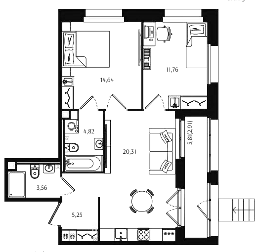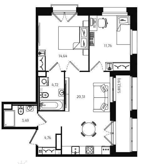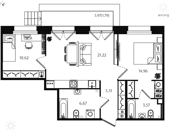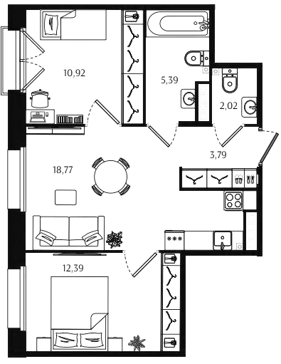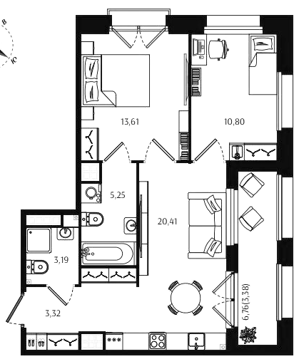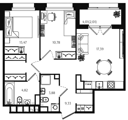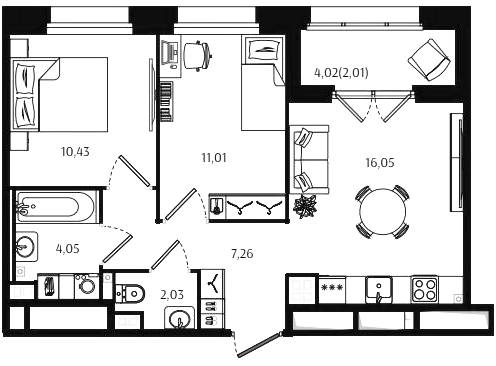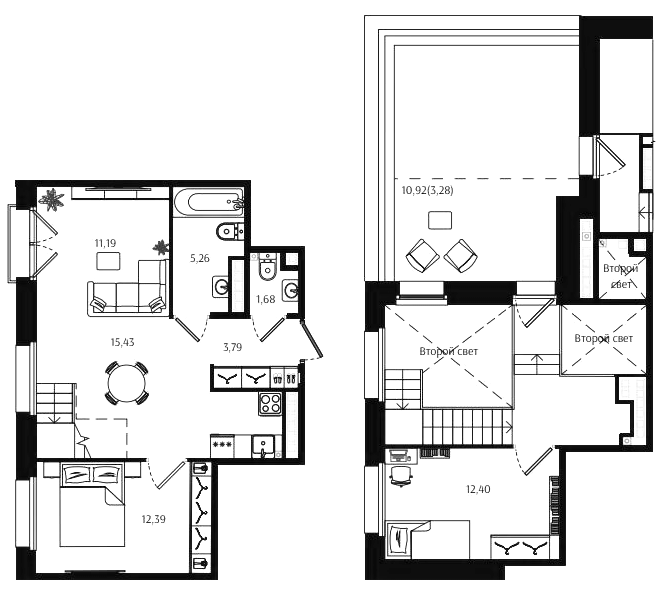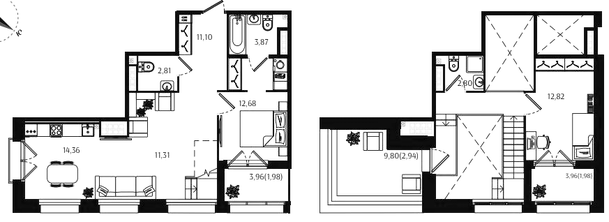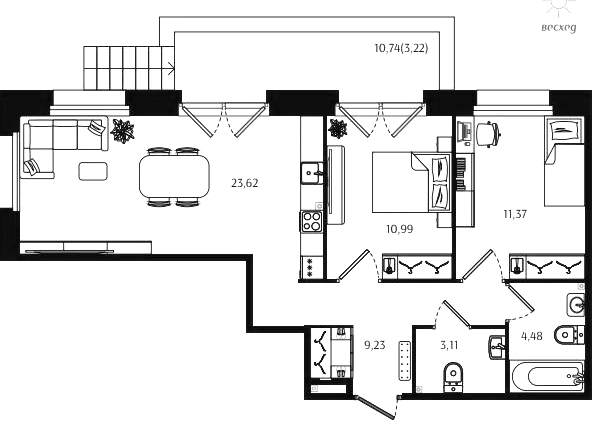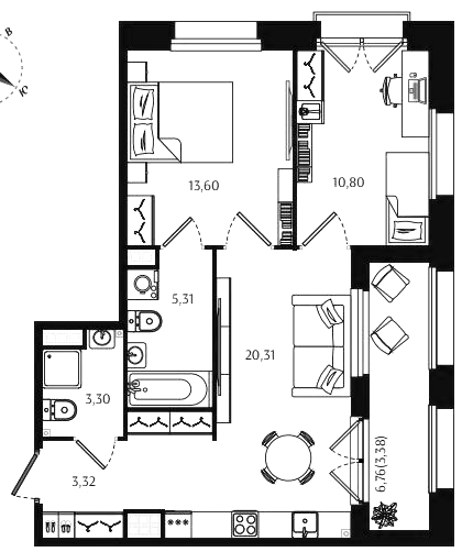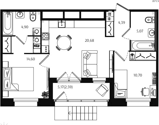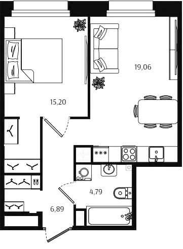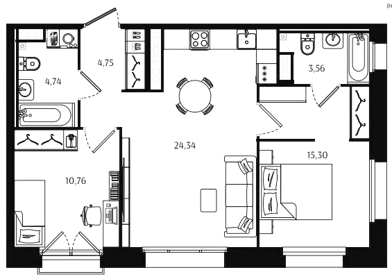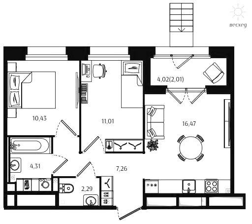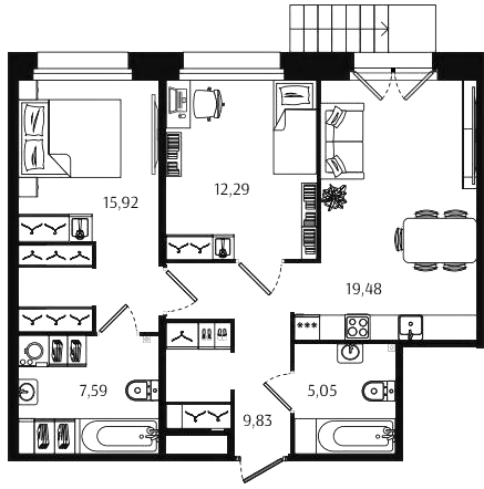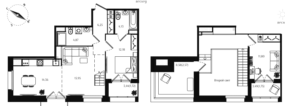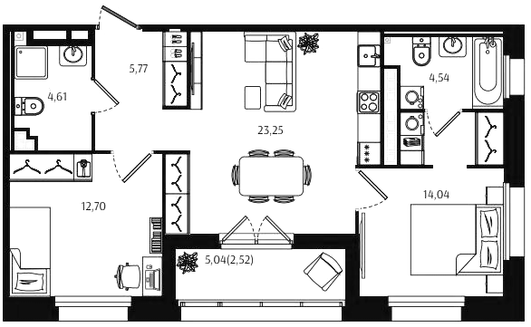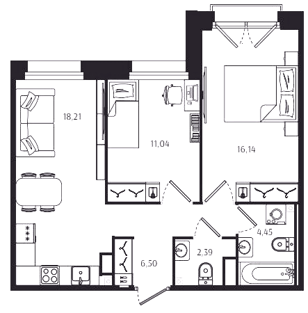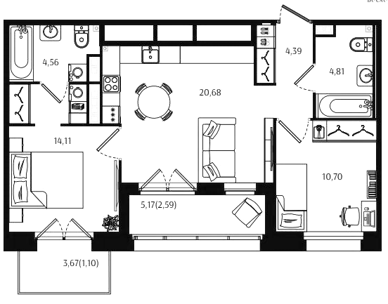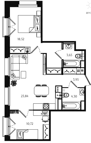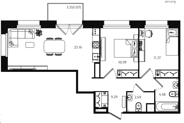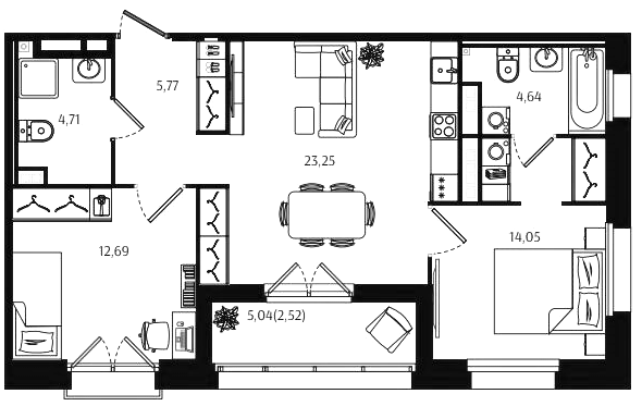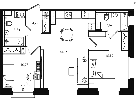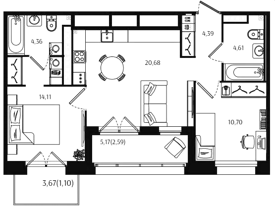 Двухкомнатные квартиры (72 квартиры, 70 планировок)