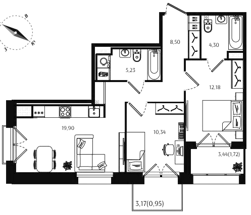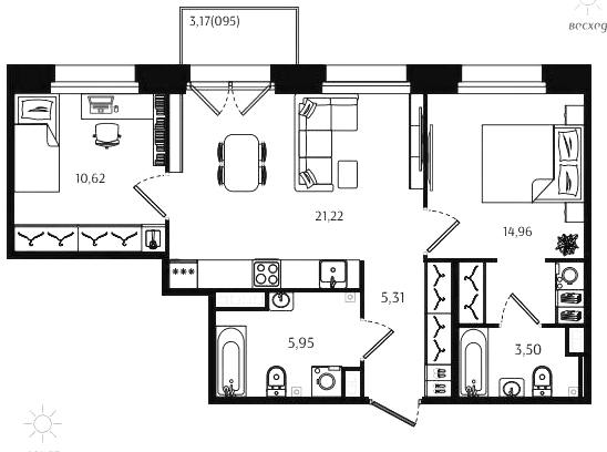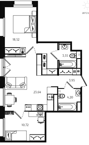 Трехкомнатные квартиры (10 квартир, 9 планировок)