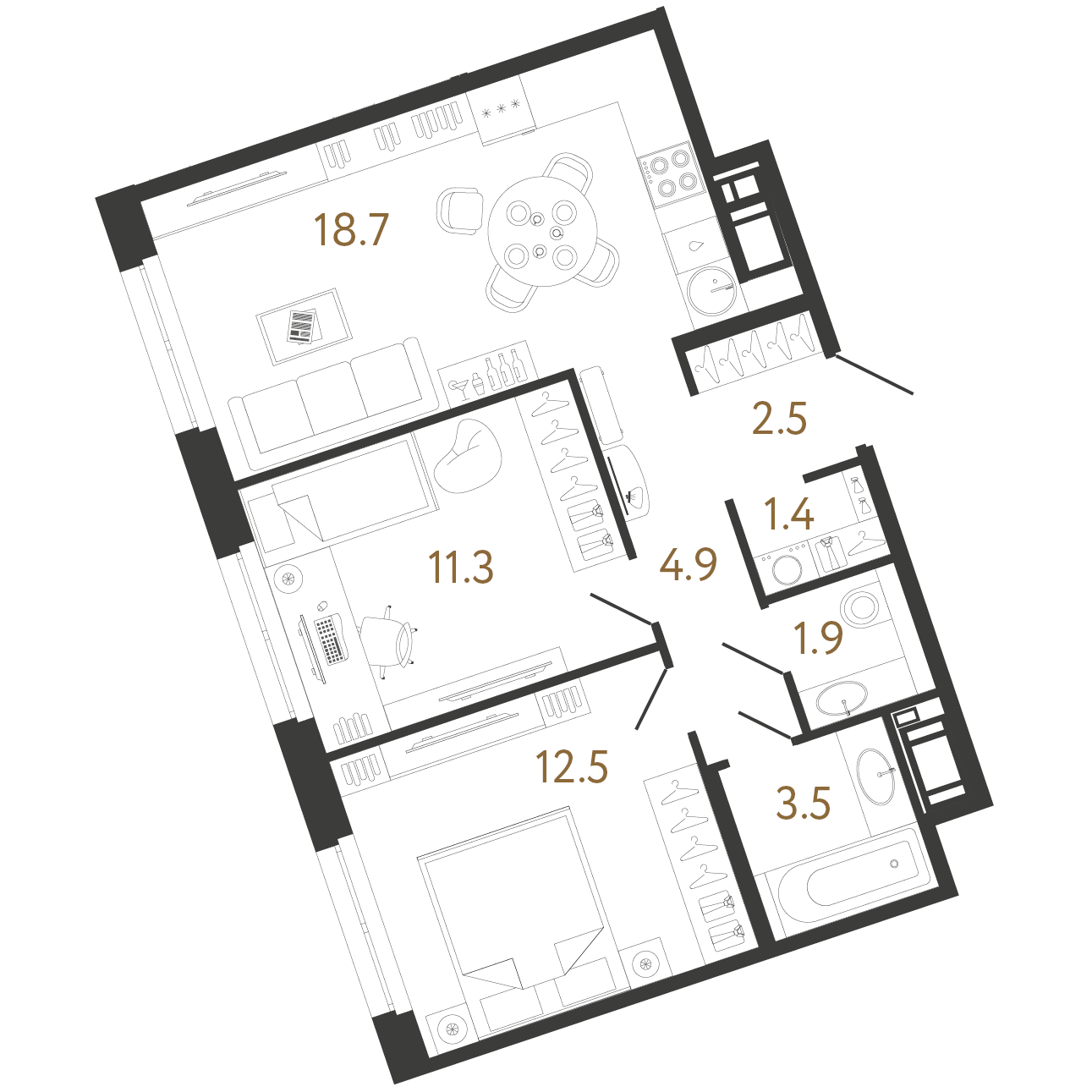 Двухкомнатные квартиры (35 квартир, 10 планировок)