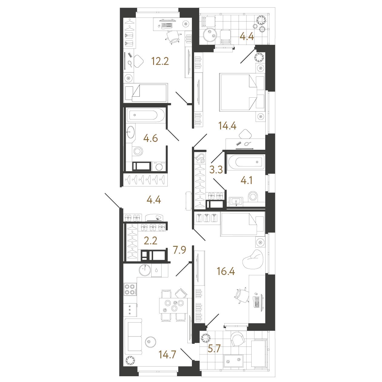 Трехкомнатные квартиры (6 квартир, 5 планировок)