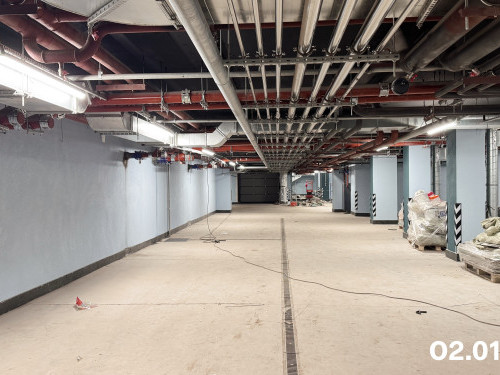 - В корпусе 2.1 продолжаются работы по устройству стен в помещениях подземного паркинга.