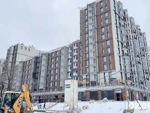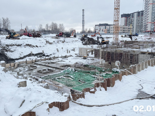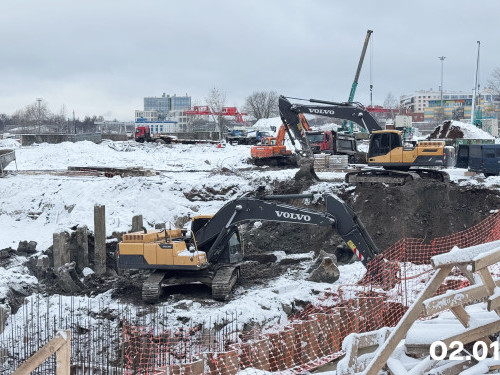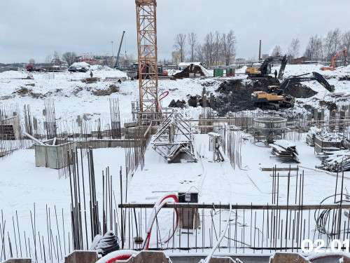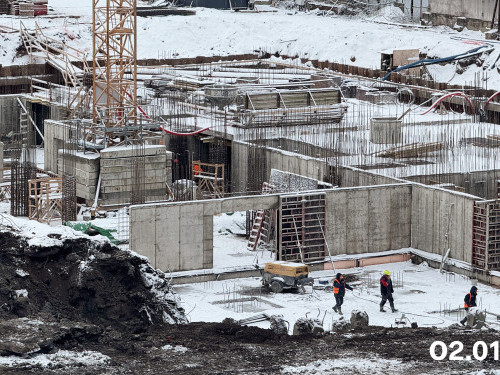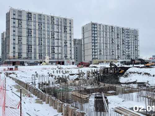 - В доме №2 в секции 2.1 выполняются монолитные работы на минус первом этаже, в секции 2.2 возводятся стены и перекрытия минус первого и первого этажей.