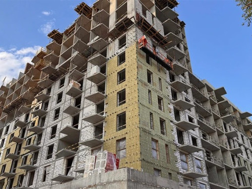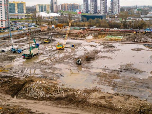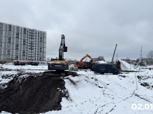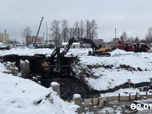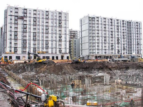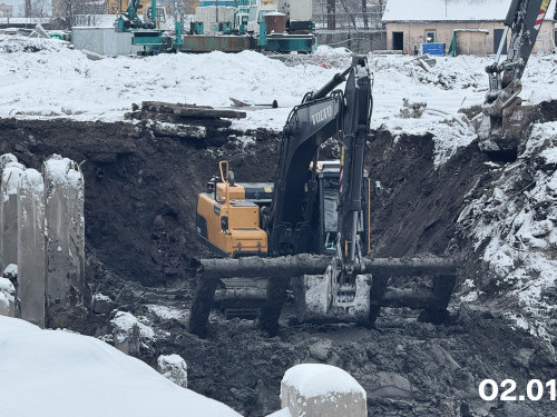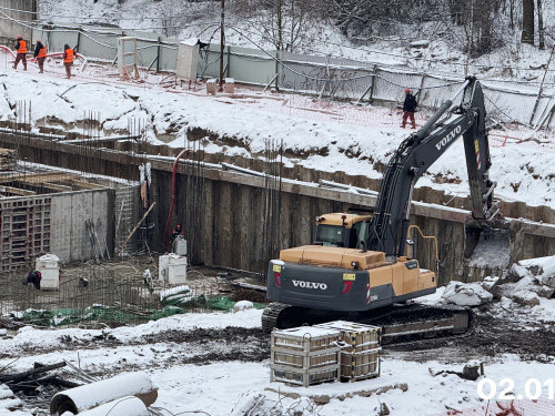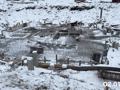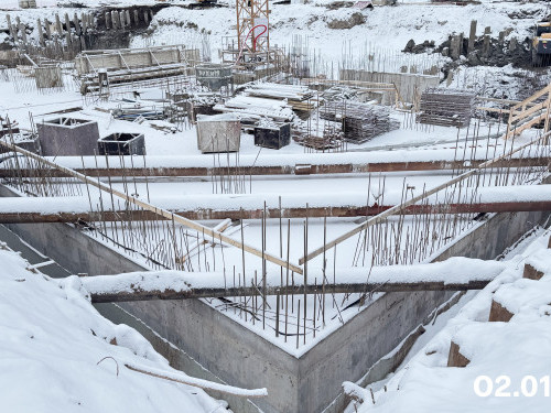 - Выполнена гидроизоляция наружных стен секции 1,2, готовятся секции 3,4. Общая строительная готовность – 13%.