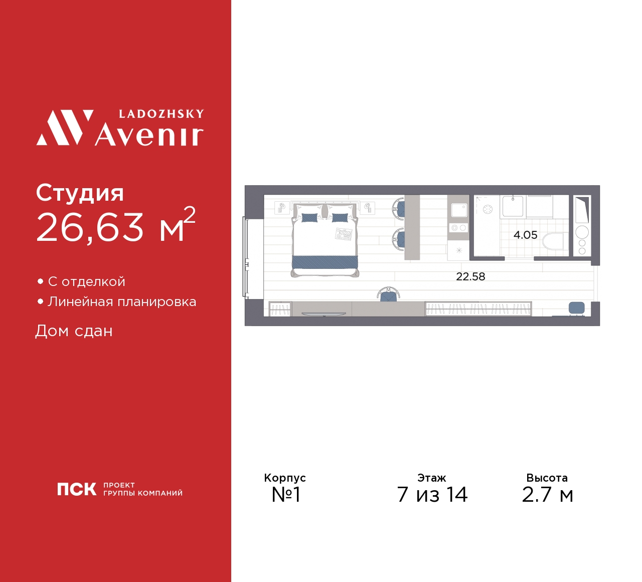 Апарт-отель Ladozhsky Avenir - мультиформальный проект бизнес-класса от "ПСК". Кроме 960 апартаментов в нем расположатся офисы и коммерческие помещения. Ввод в эксплуатацию ожидается в конце 2024 года, выдача ключей произойдет до 3 квартала 2025 г.