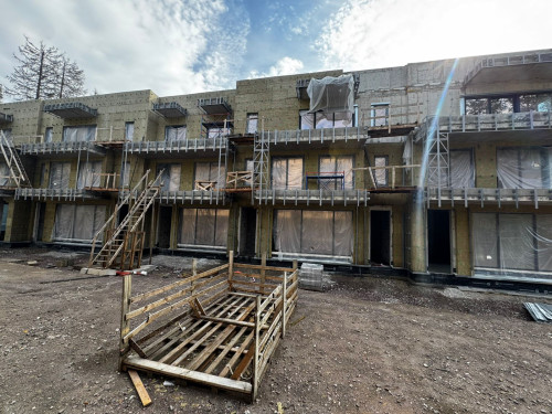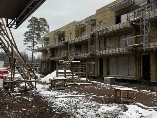 - На втором корпусе идет кладка перегородок кровли, перегородок котельных в домах.