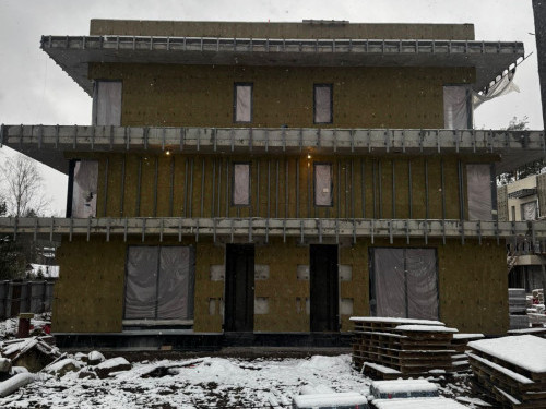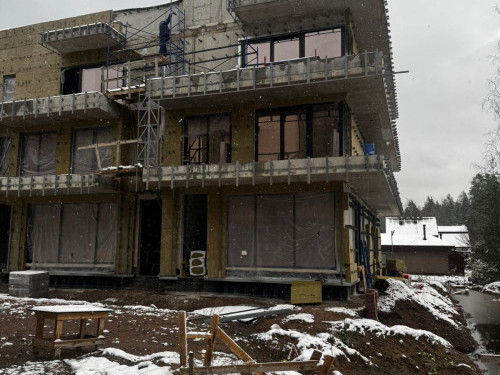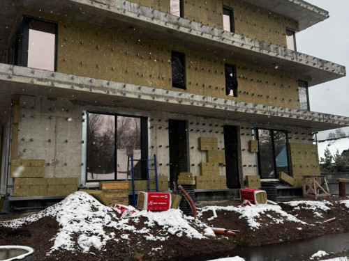 - Завершаются работы по монтажу алюминиевых рам, окон и витражей. Завершена заливка балконных парапетов.