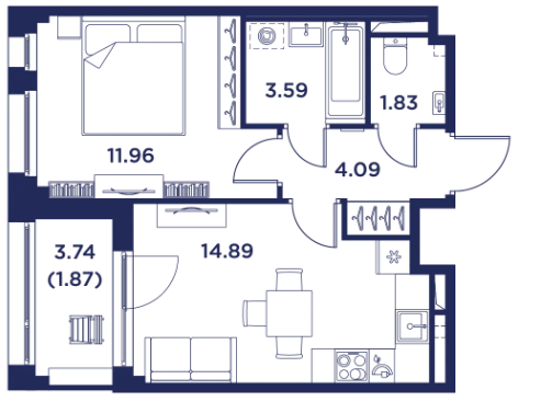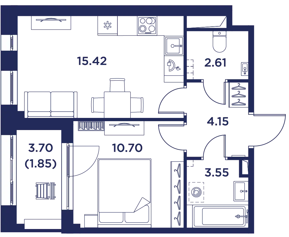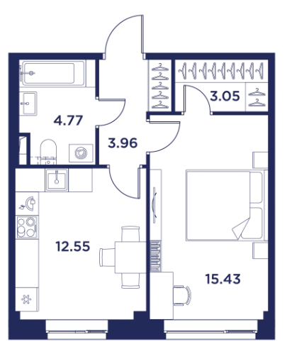 Однокомнатные квартиры (6 квартир, 6 планировок)