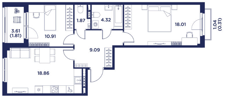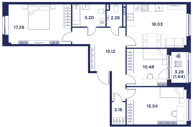 Трехкомнатные квартиры (5 квартир, 5 планировок)