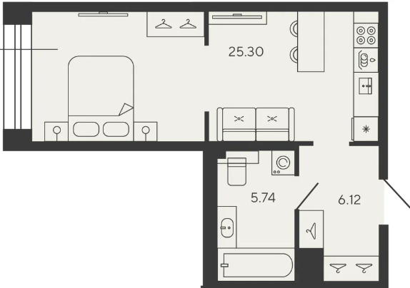 Однокомнатные квартиры (3 квартиры, 3 планировки)