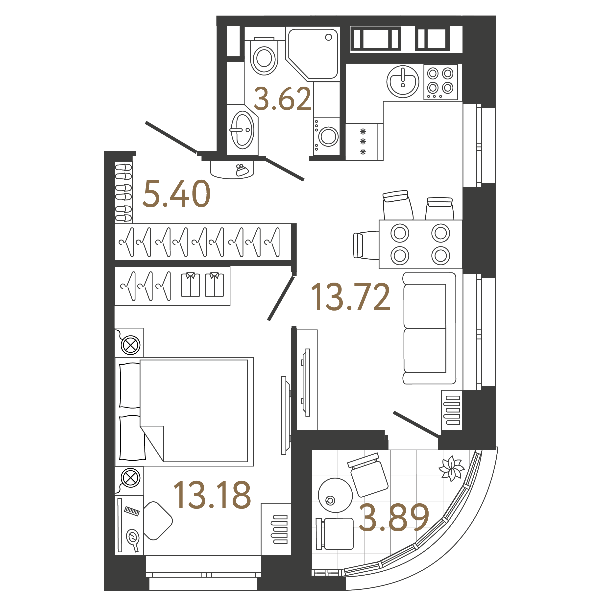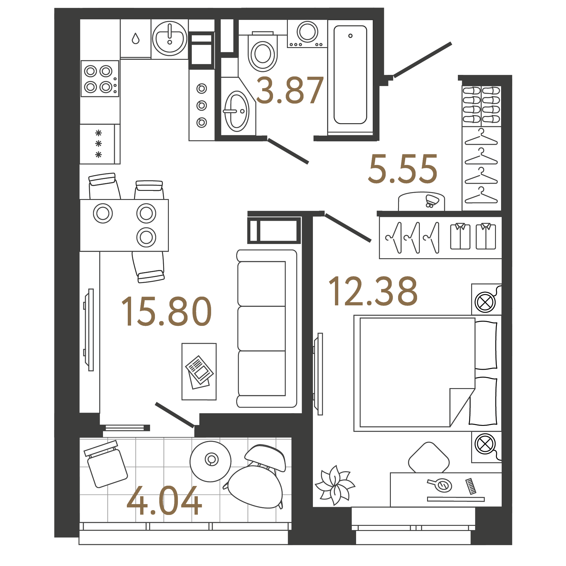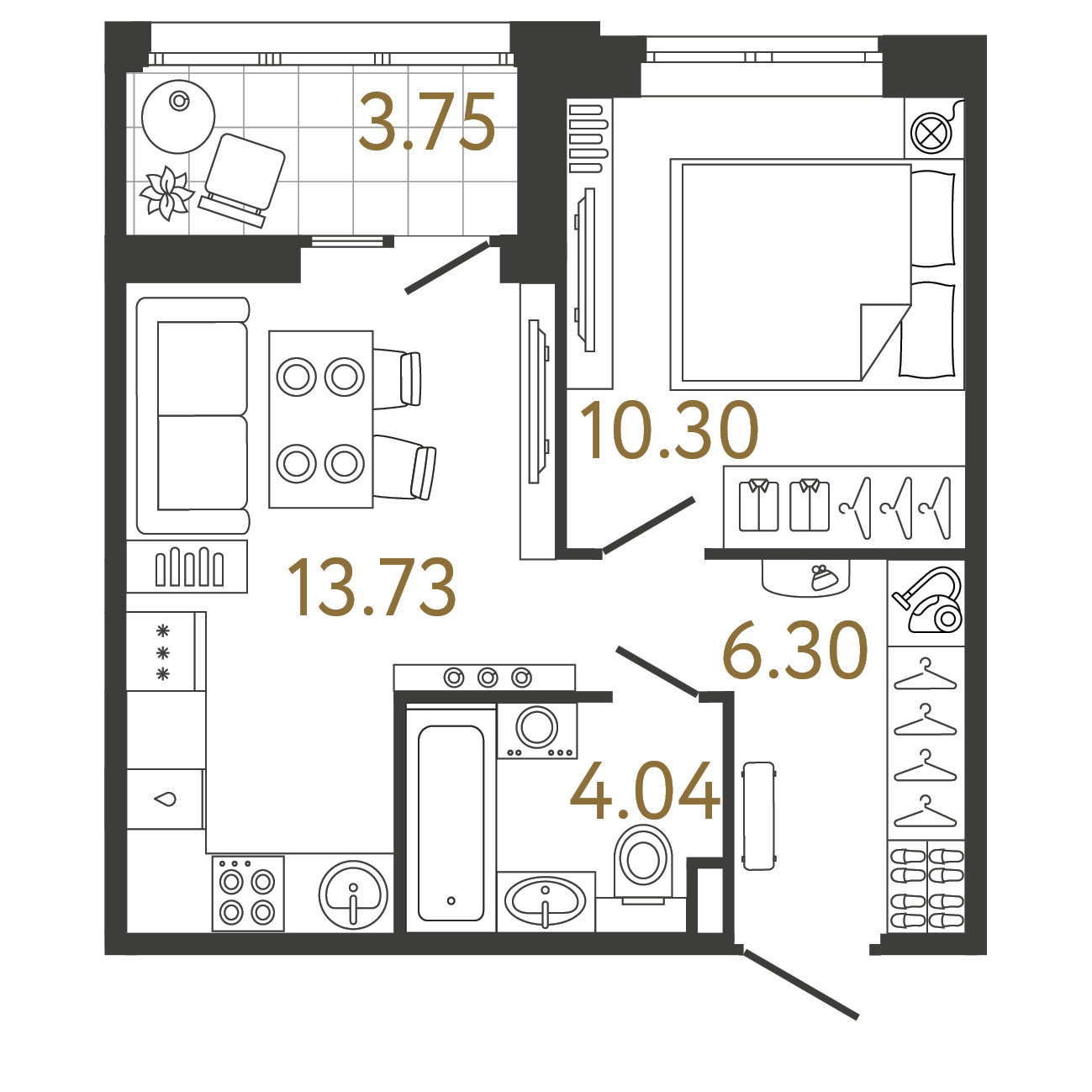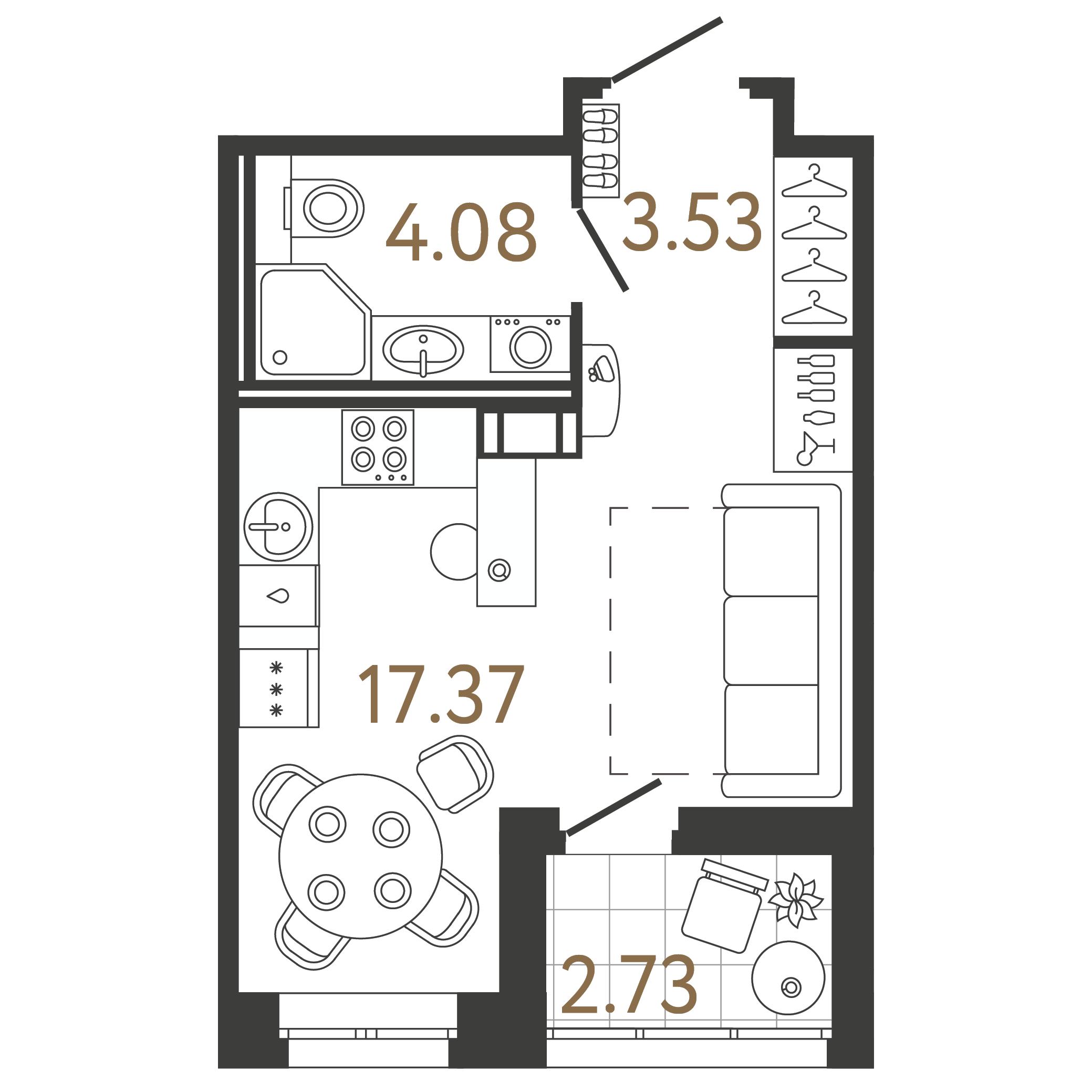 Однокомнатные квартиры (193 квартиры, 34 планировки)