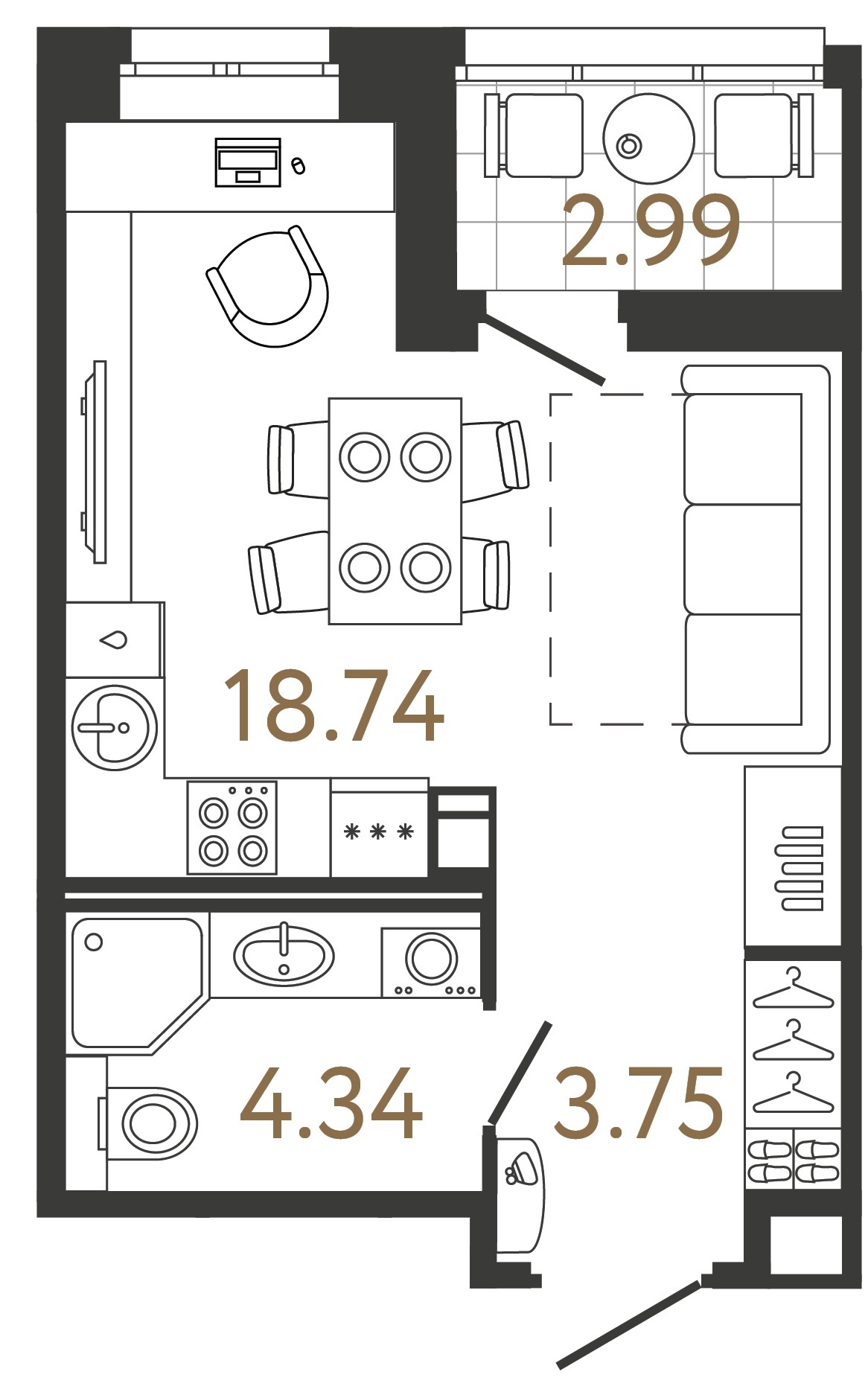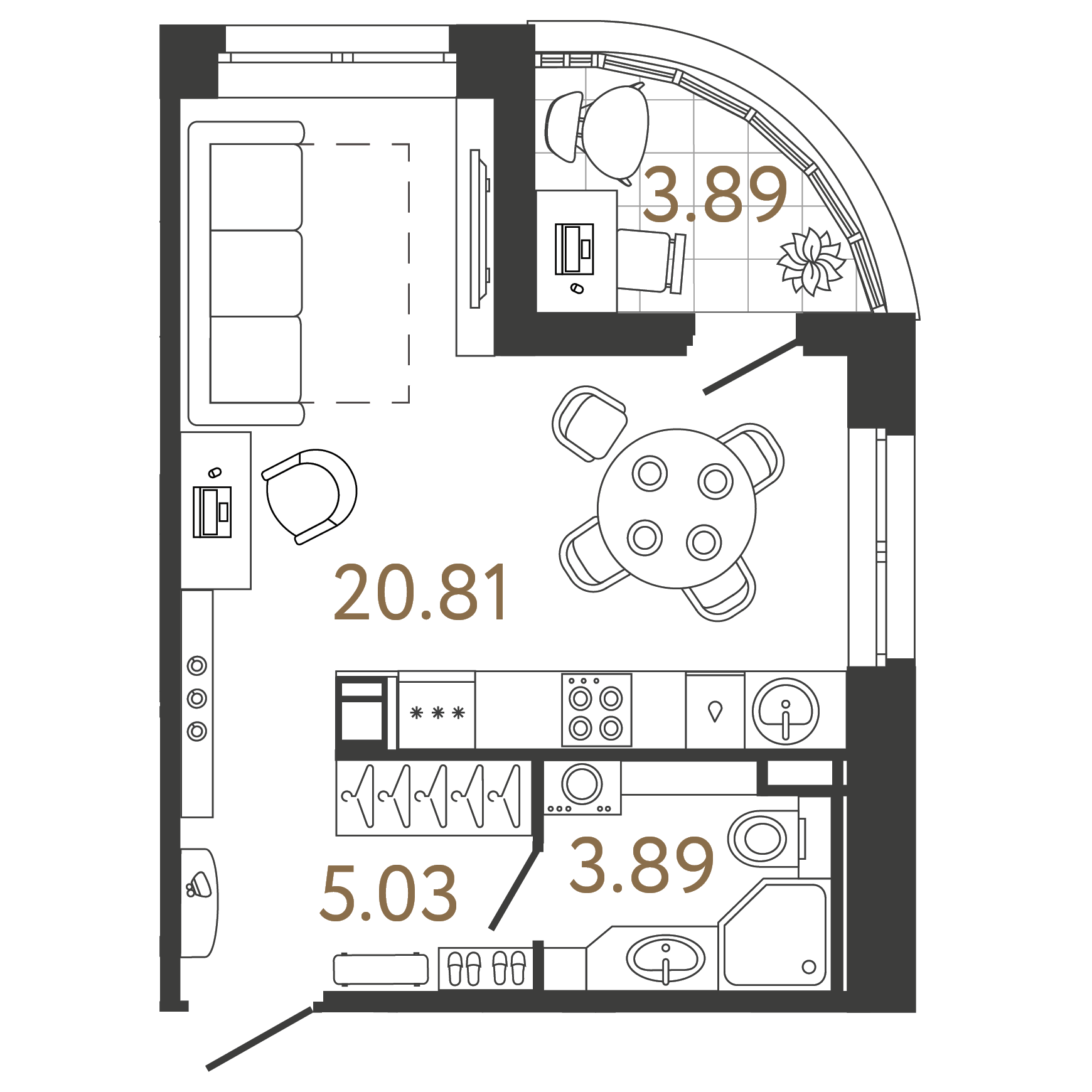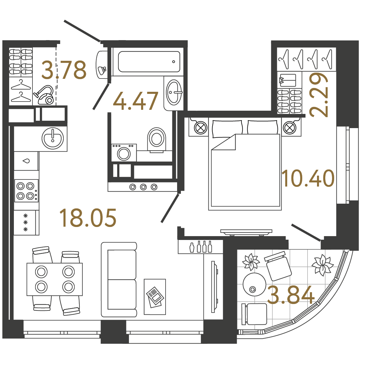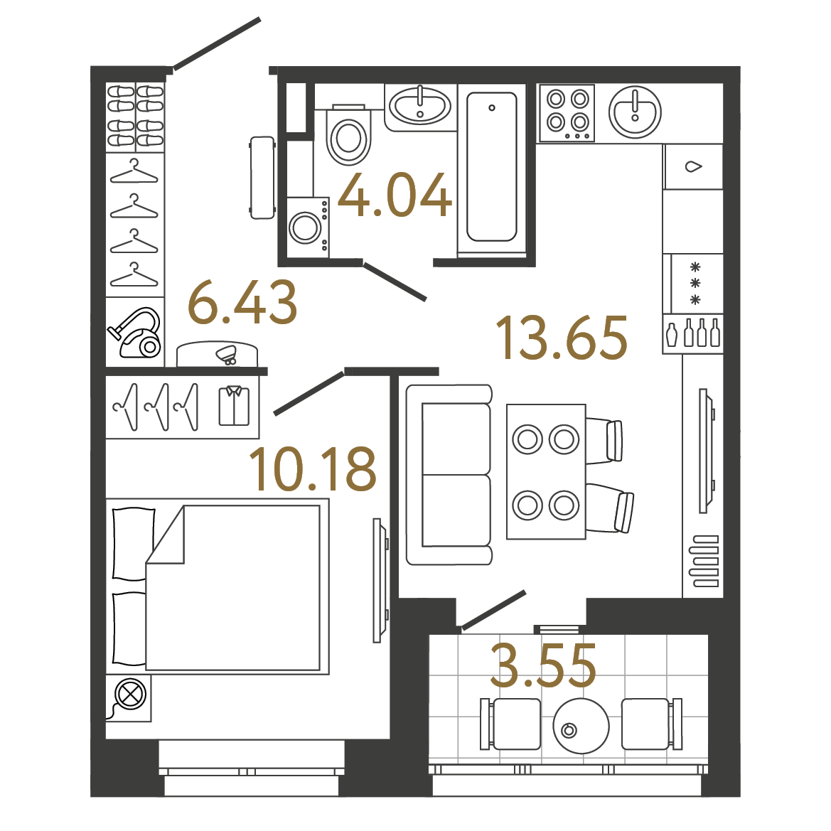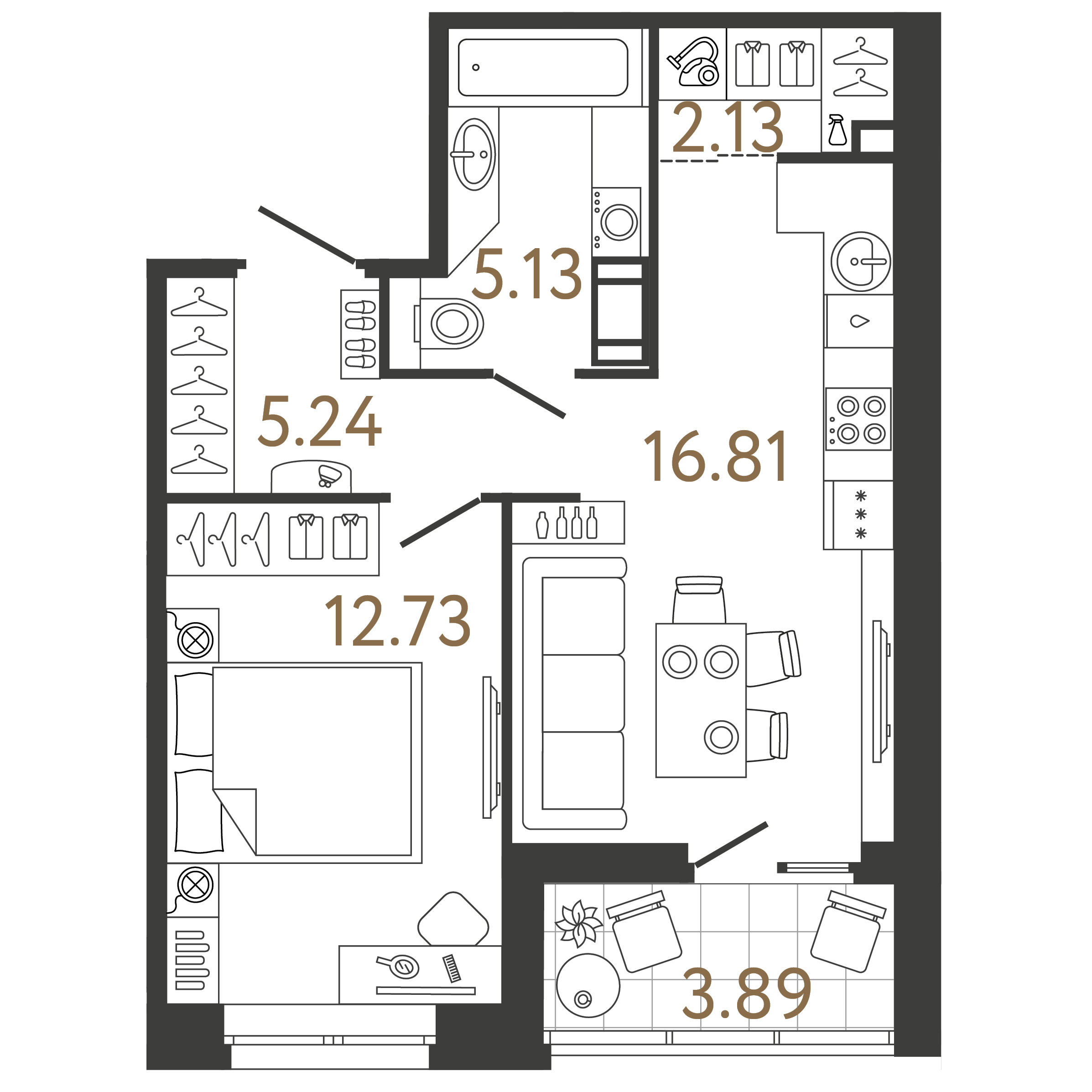 Однокомнатные квартиры (193 квартиры, 34 планировки)