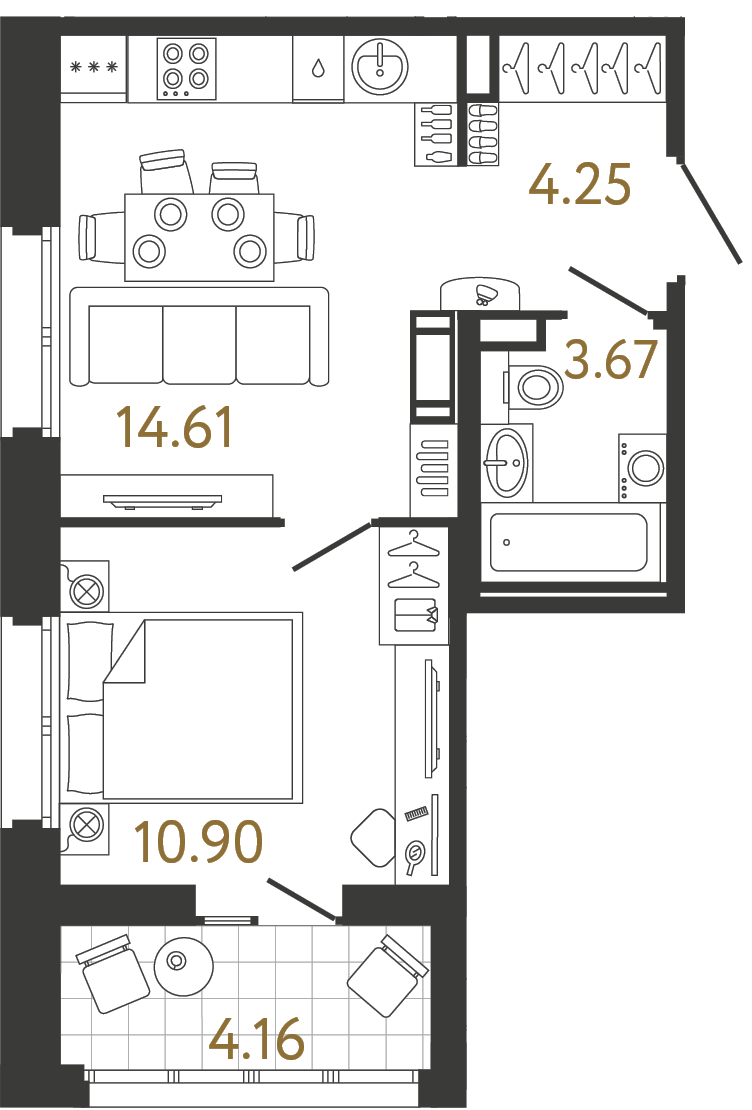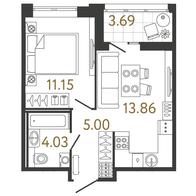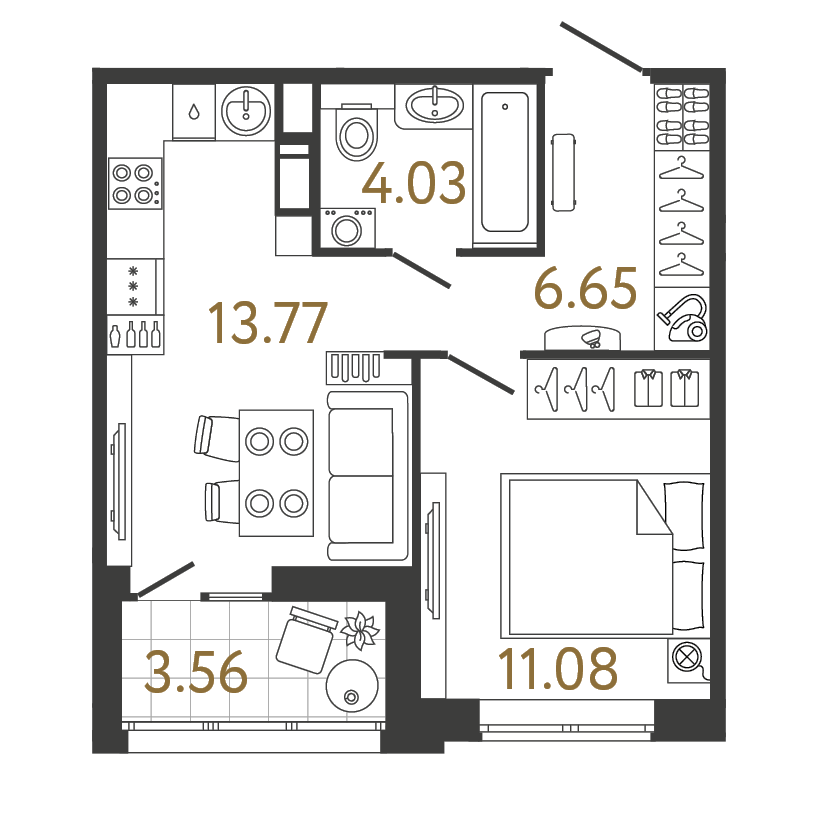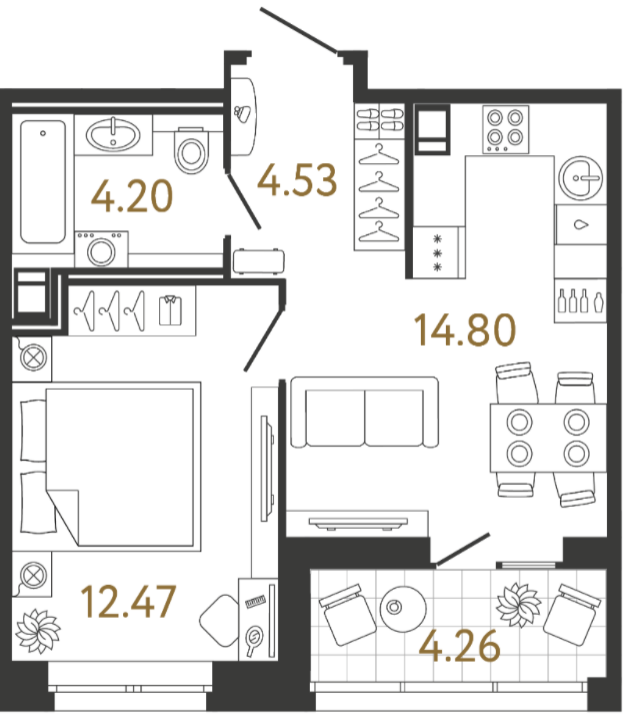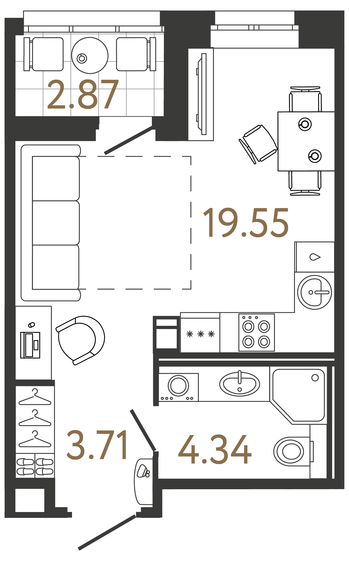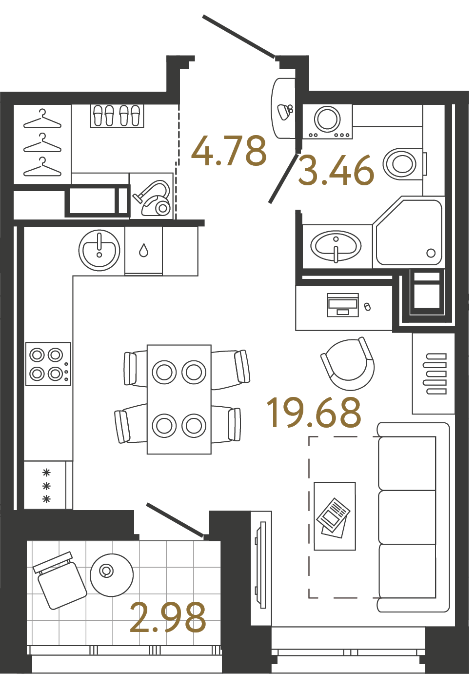 Однокомнатные квартиры (193 квартиры, 34 планировки)