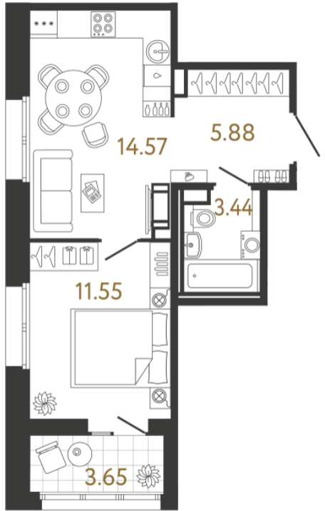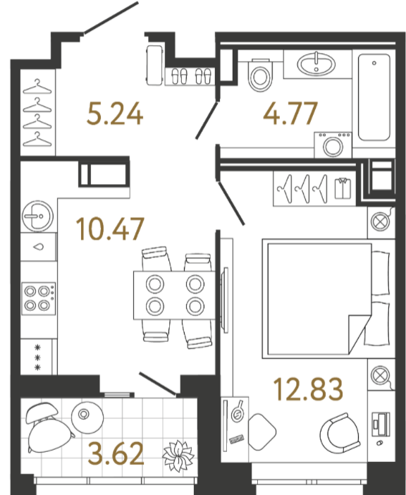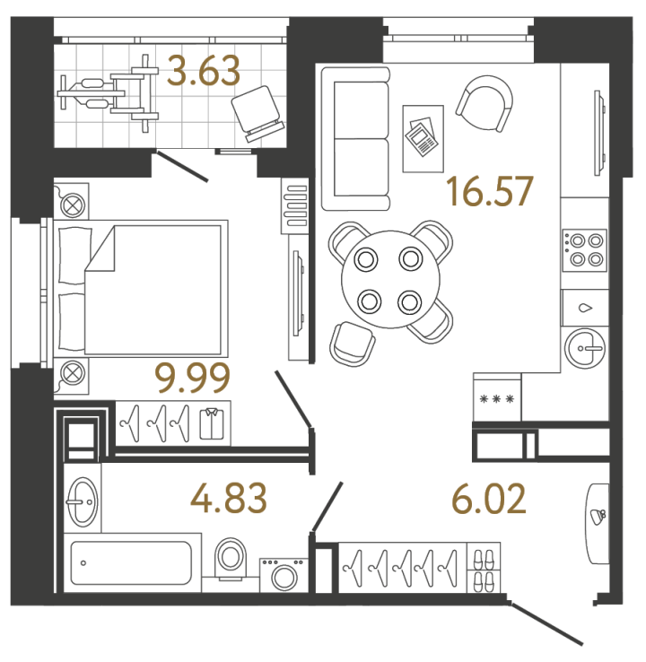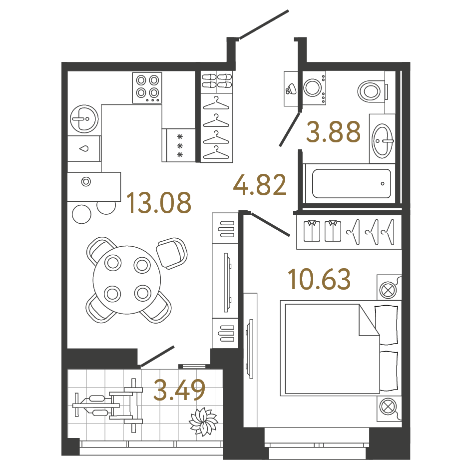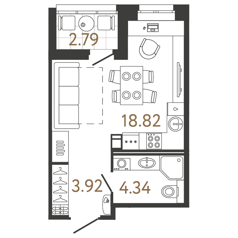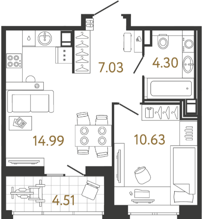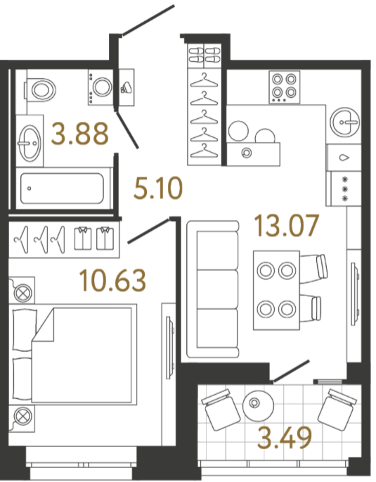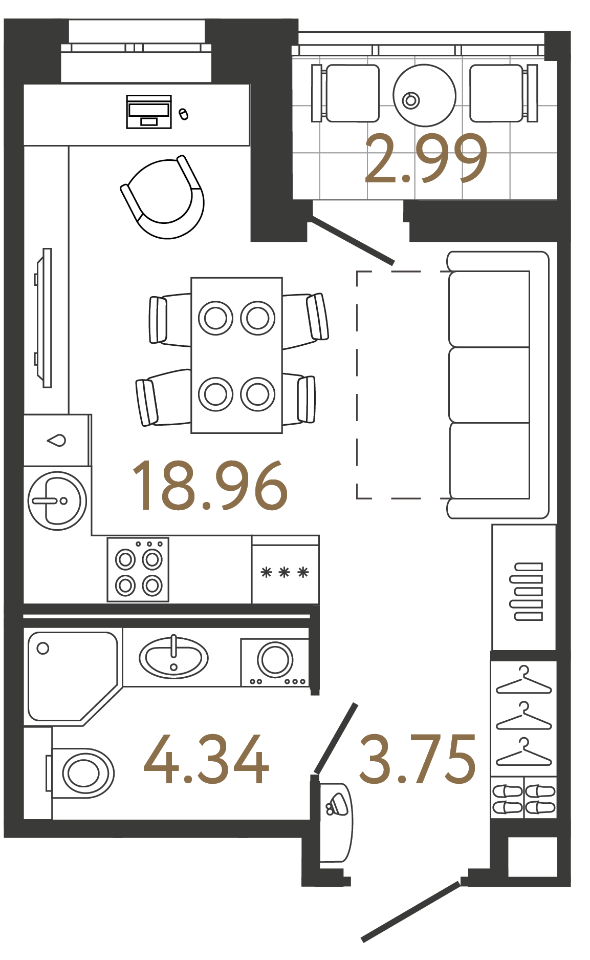 Однокомнатные квартиры (193 квартиры, 34 планировки)