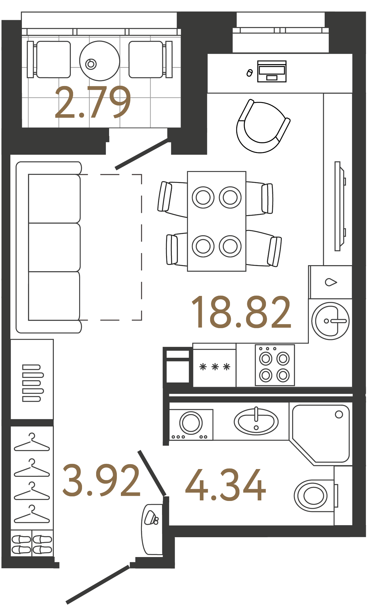 Студия (41 квартира, 8 планировок)