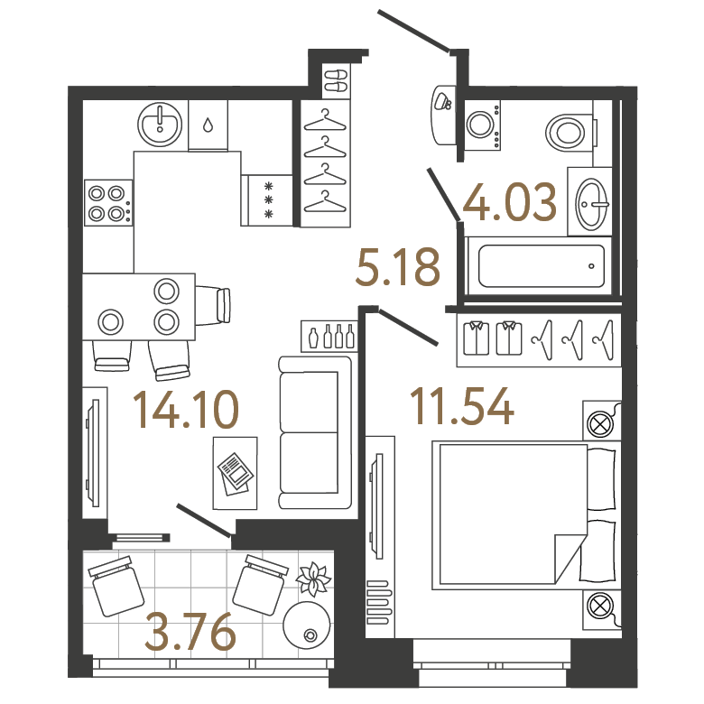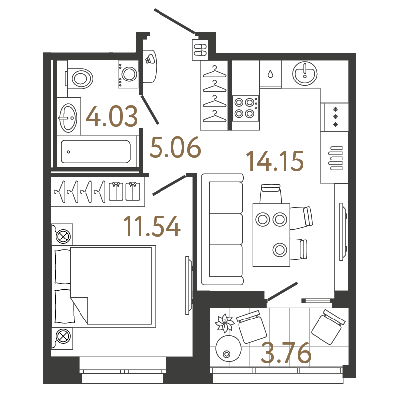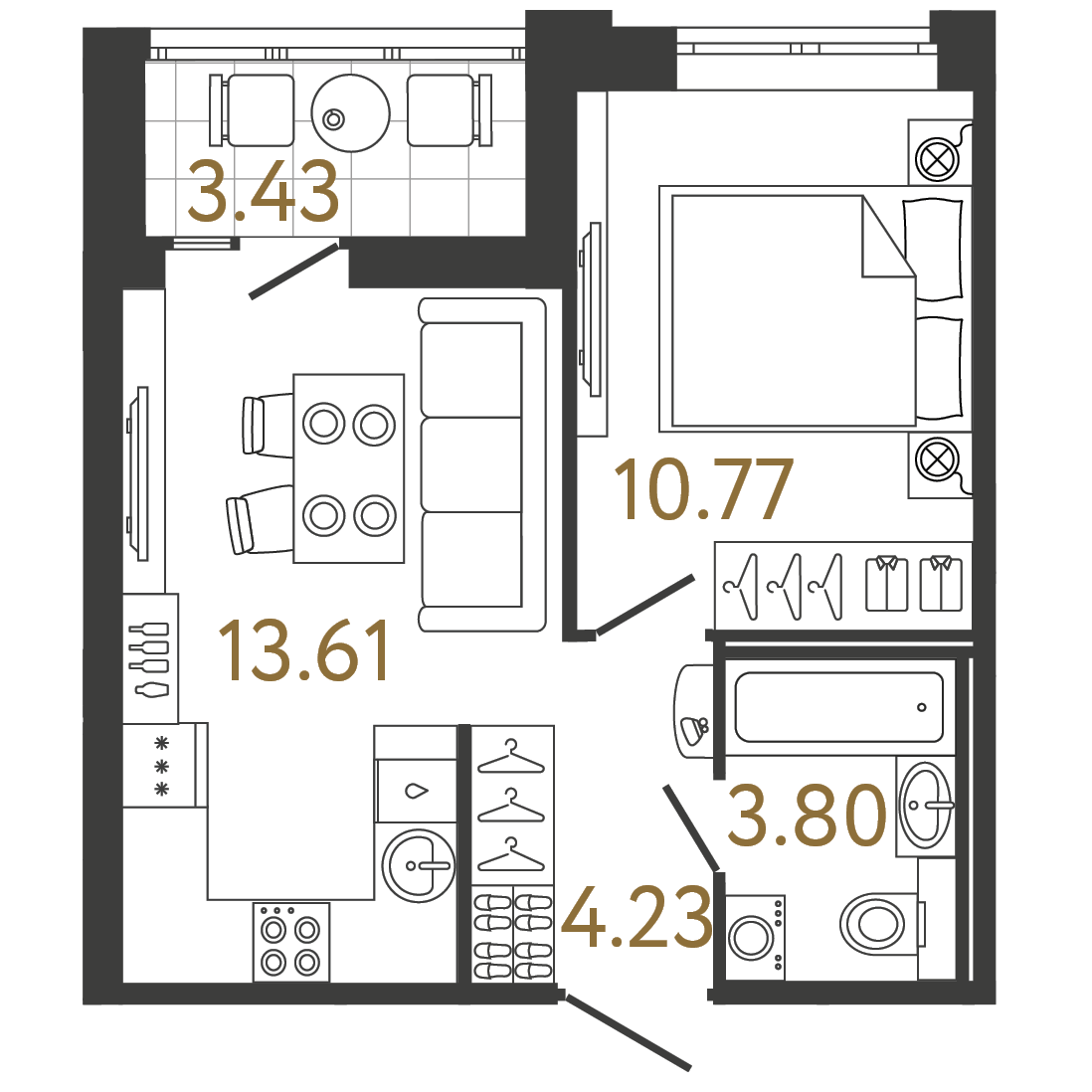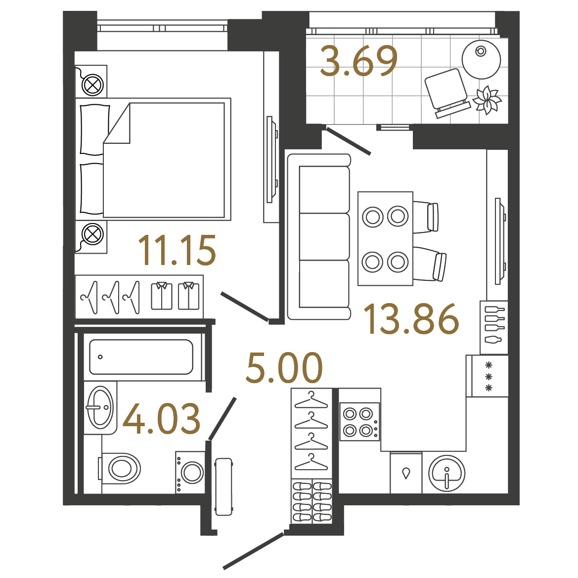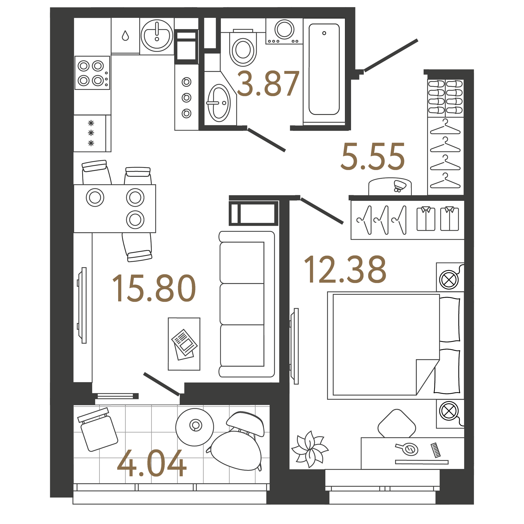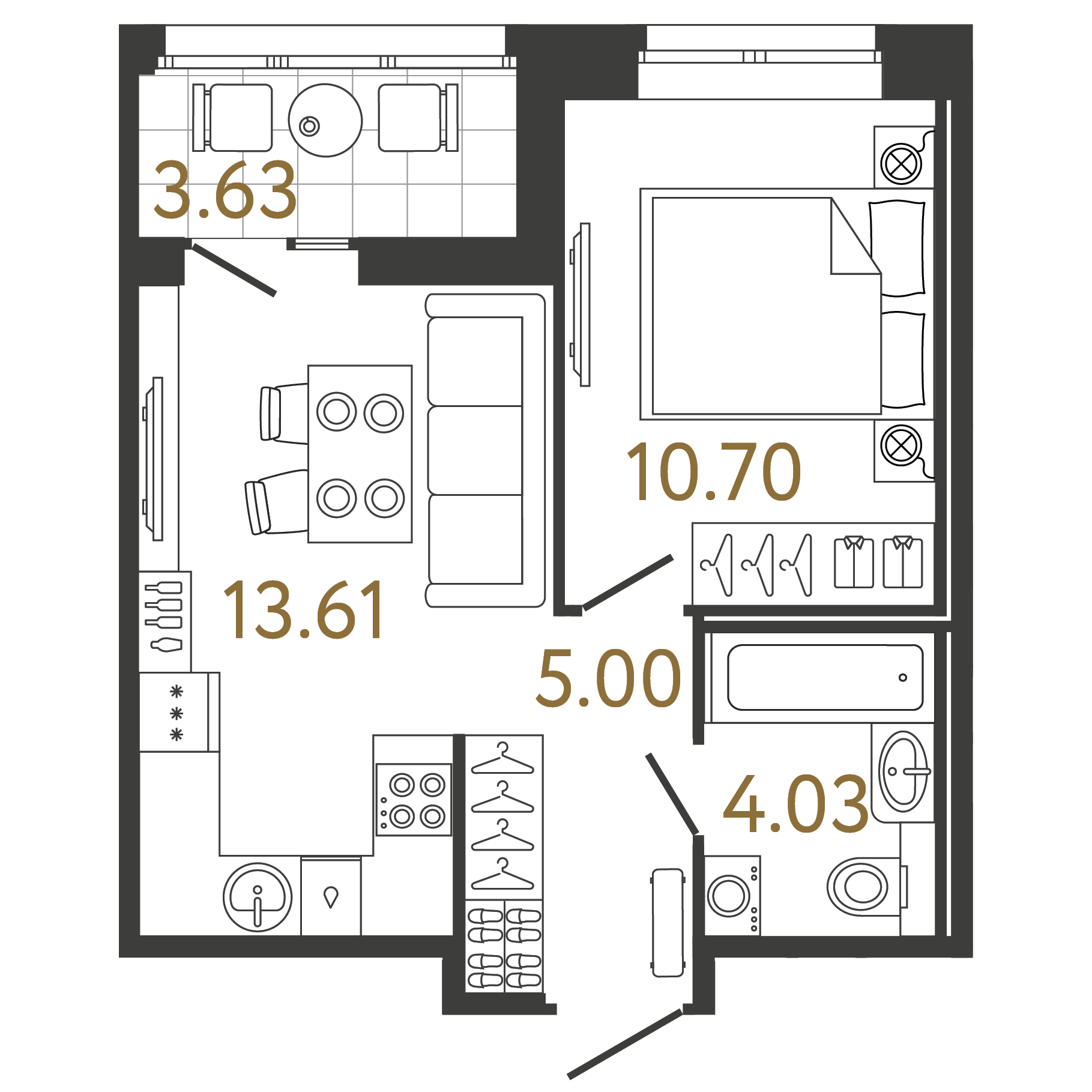 Однокомнатные квартиры (161 квартира, 34 планировки)