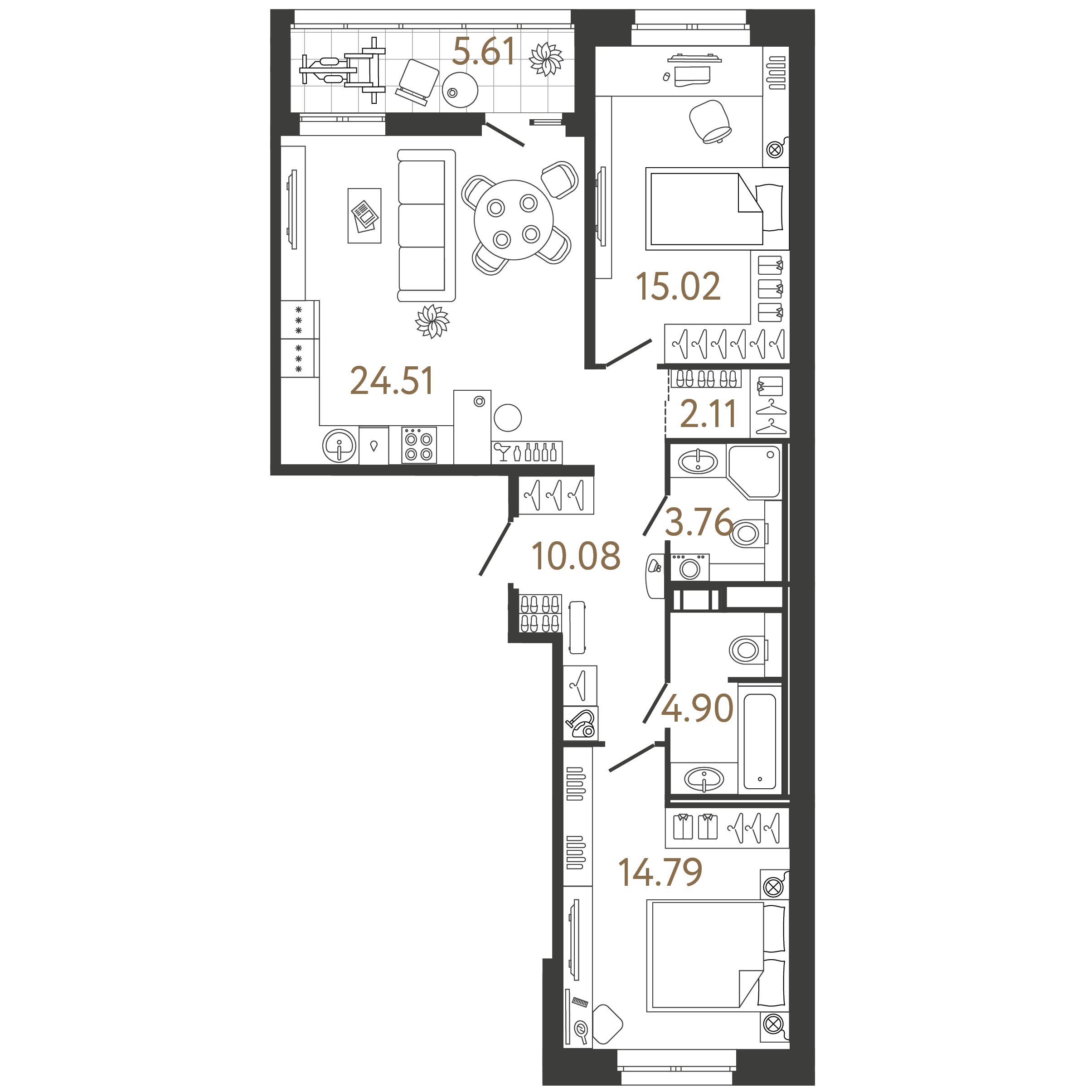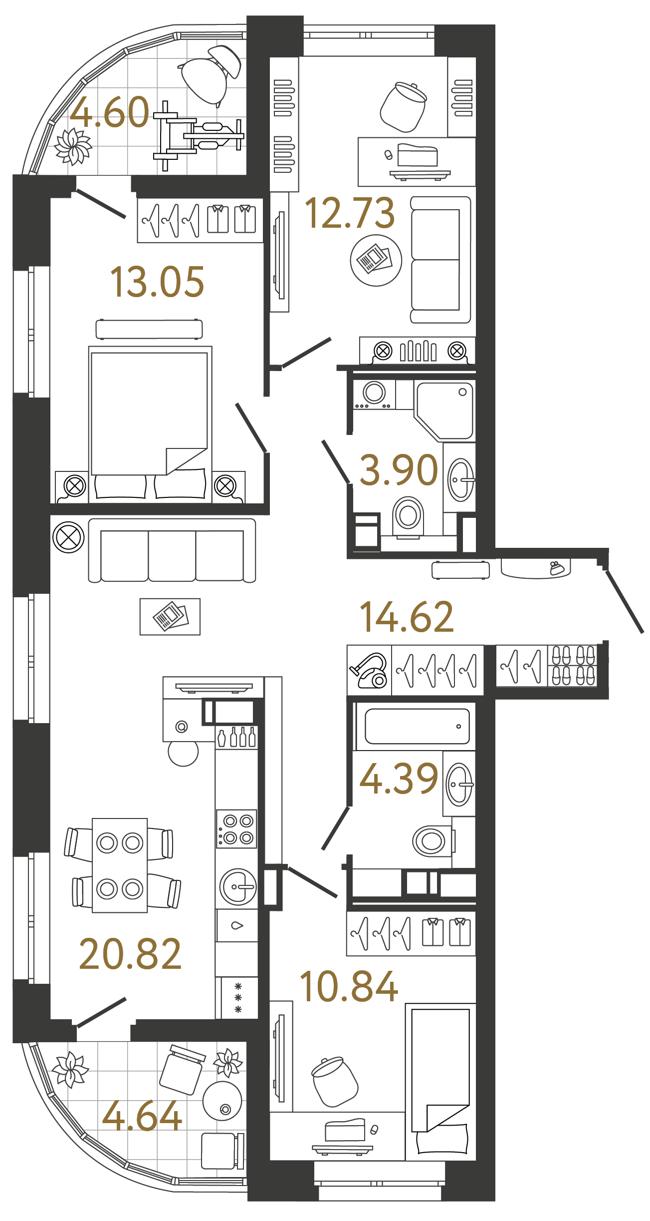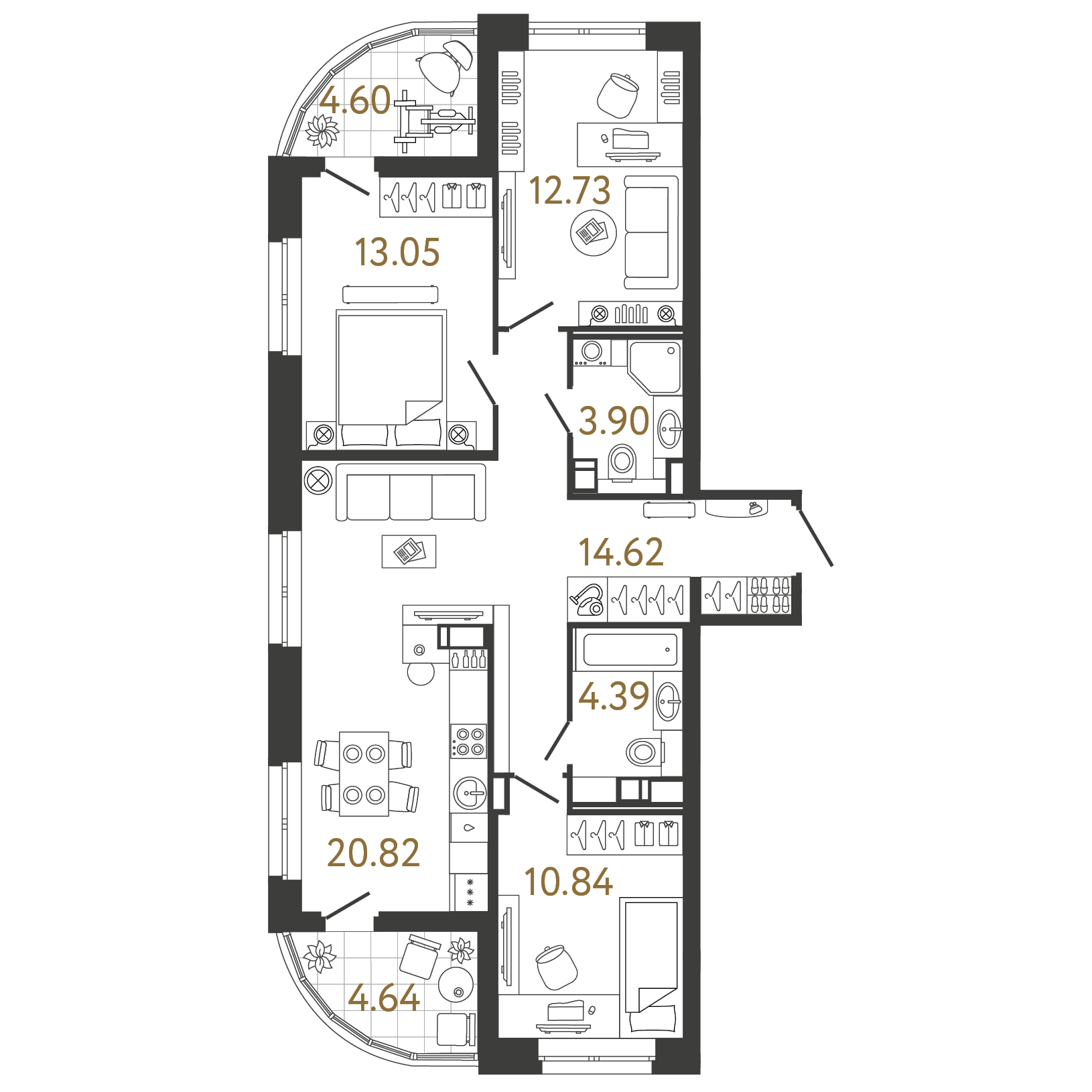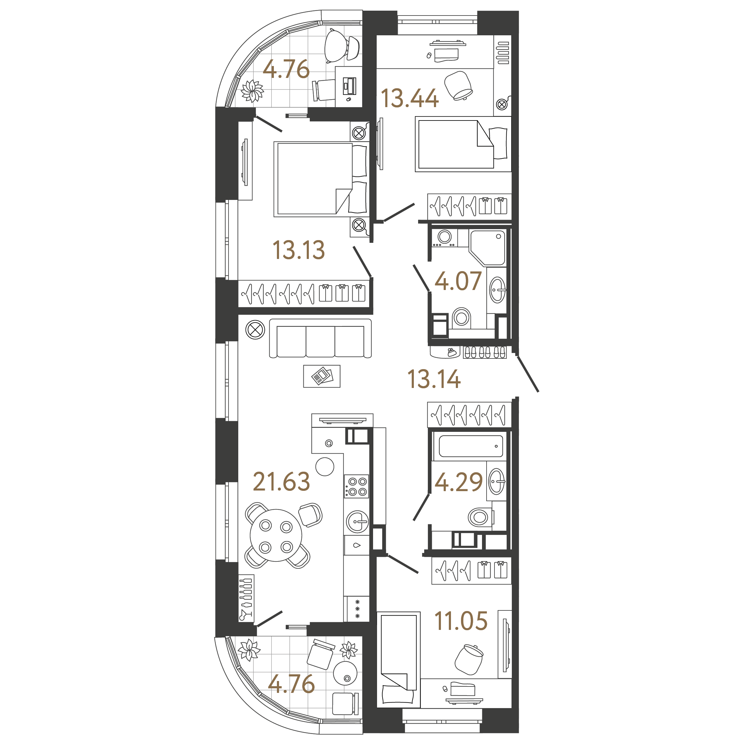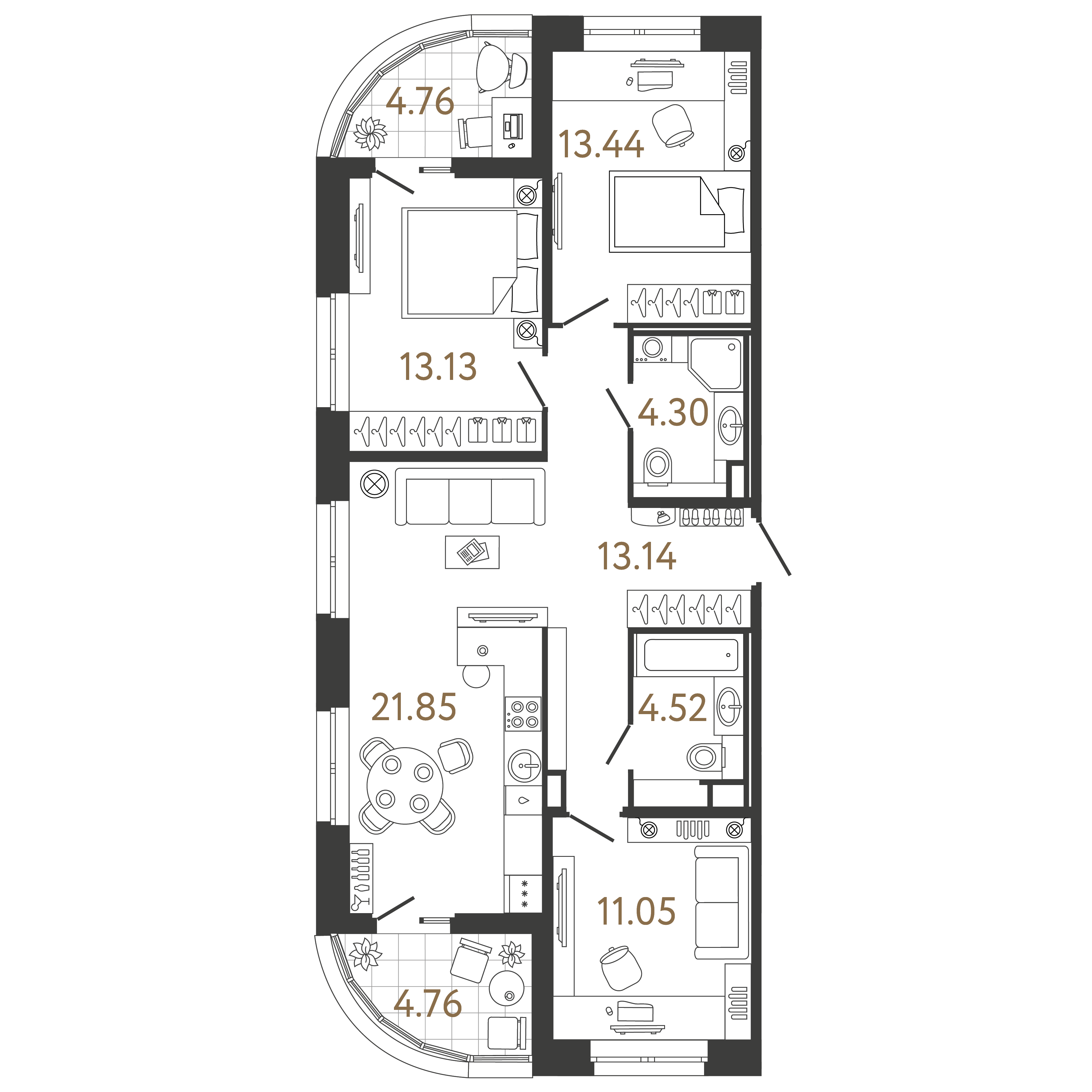 Трехкомнатные квартиры (15 квартир, 4 планировки)