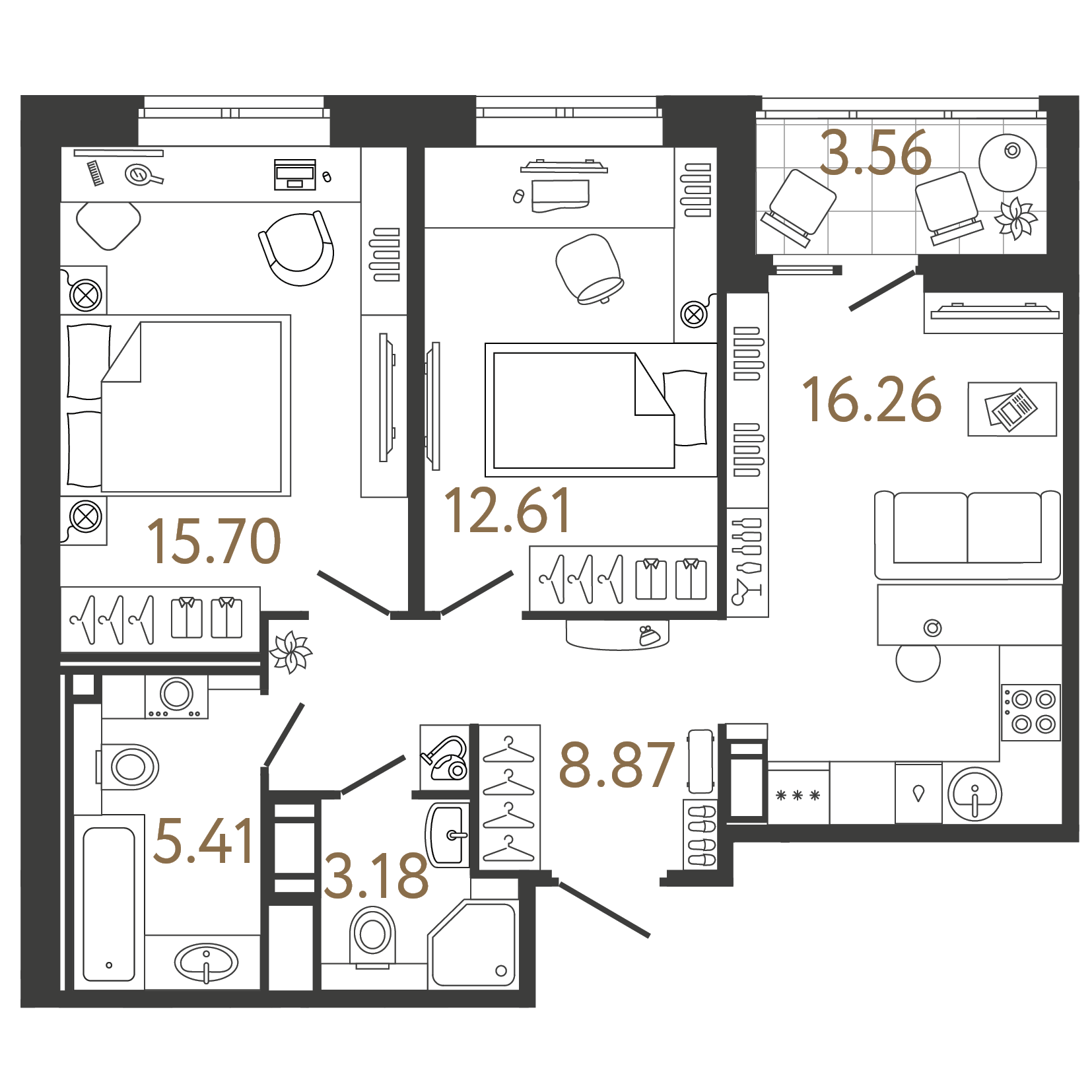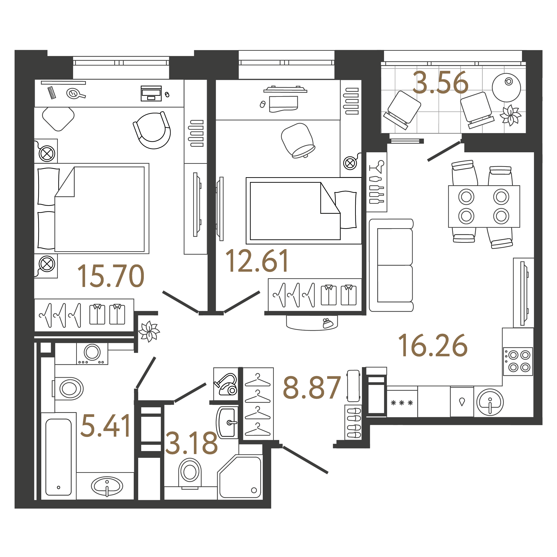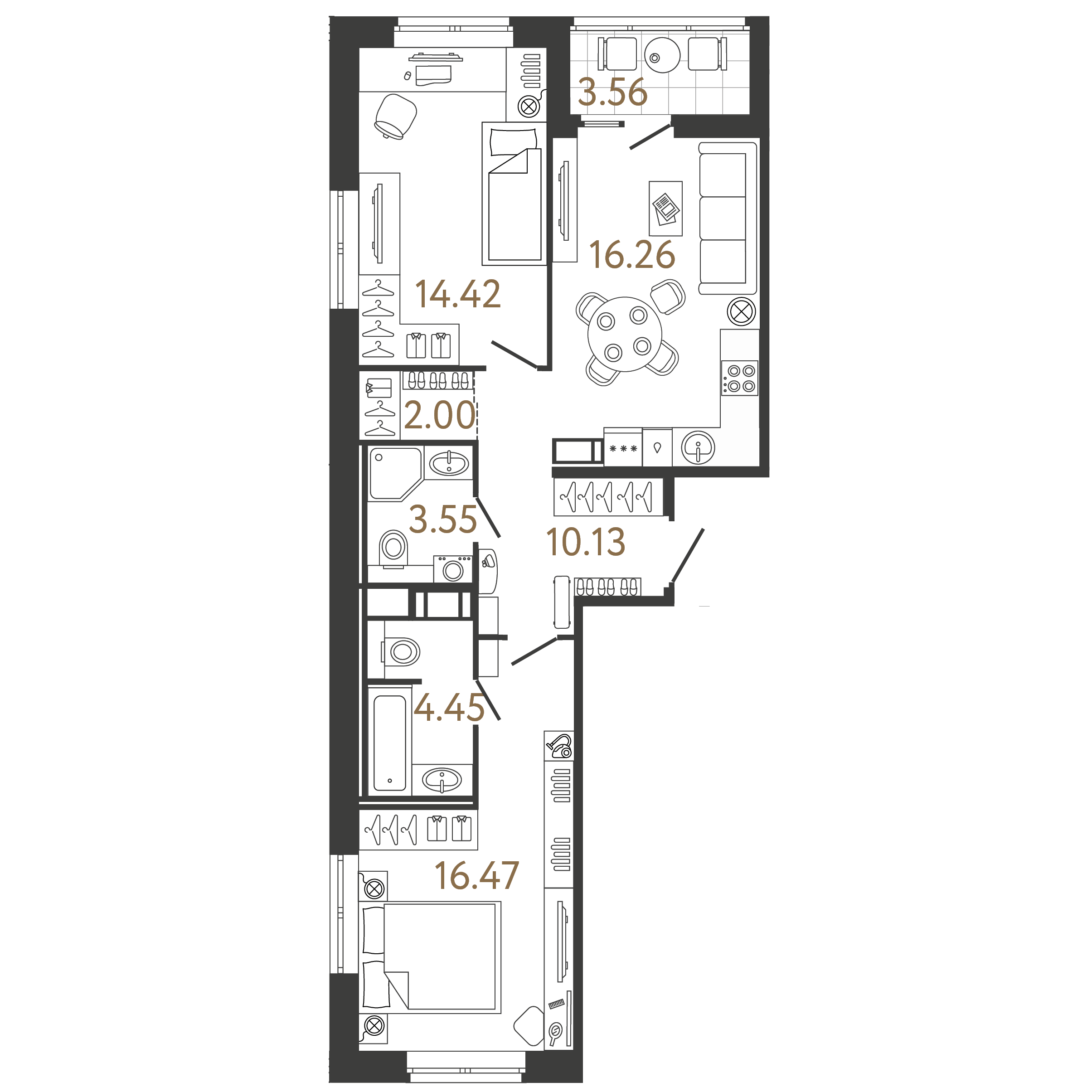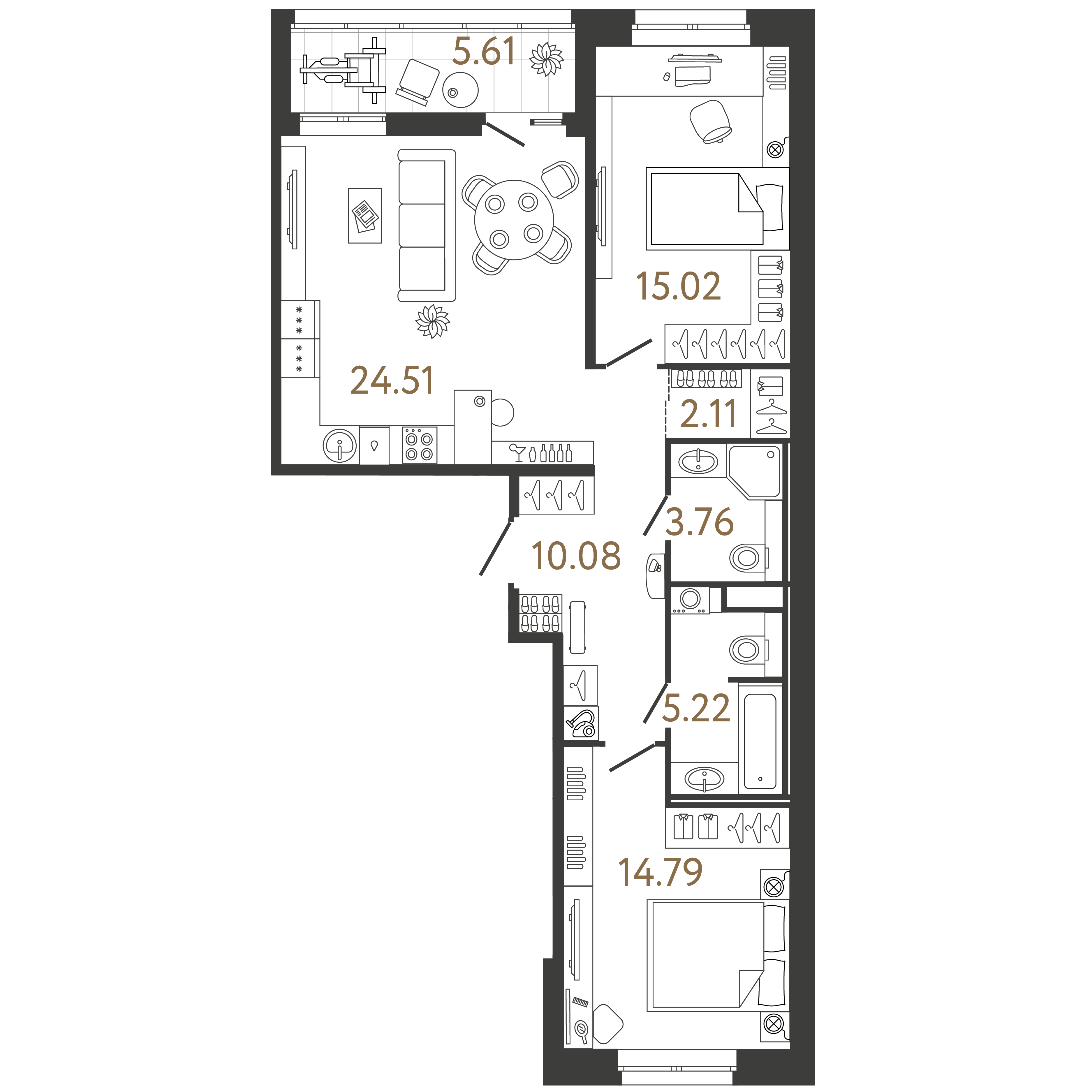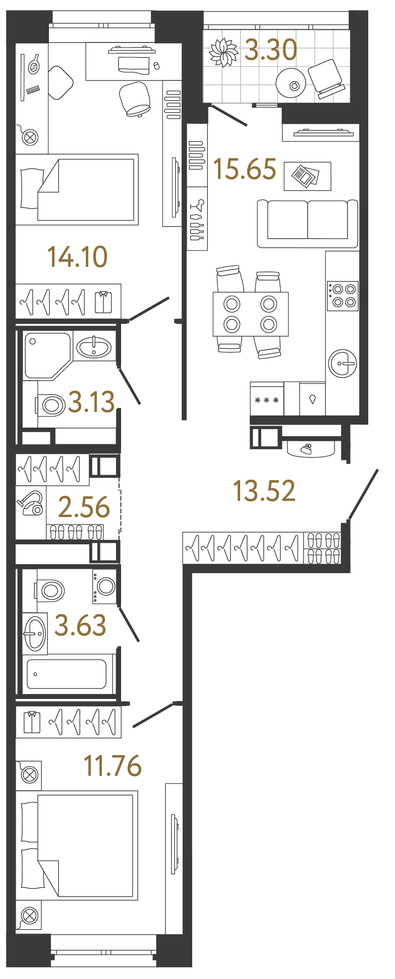 Трехкомнатные квартиры (15 квартир, 4 планировки)