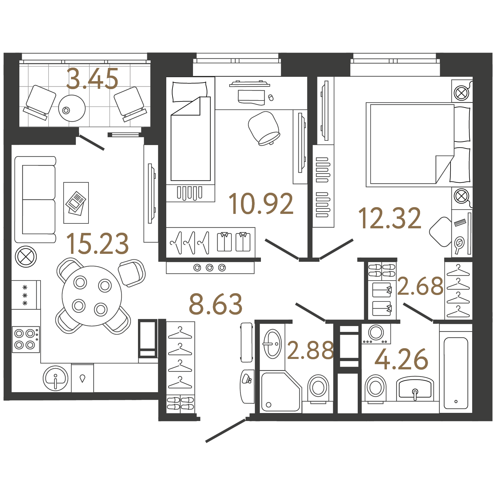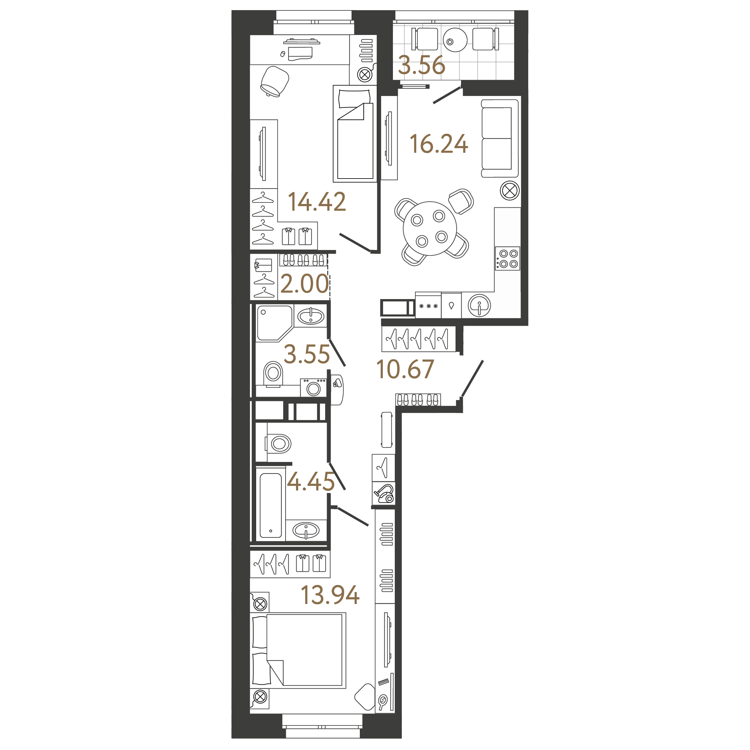 Двухкомнатные квартиры (48 квартир, 11 планировок)
