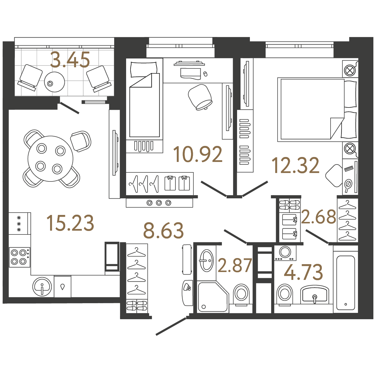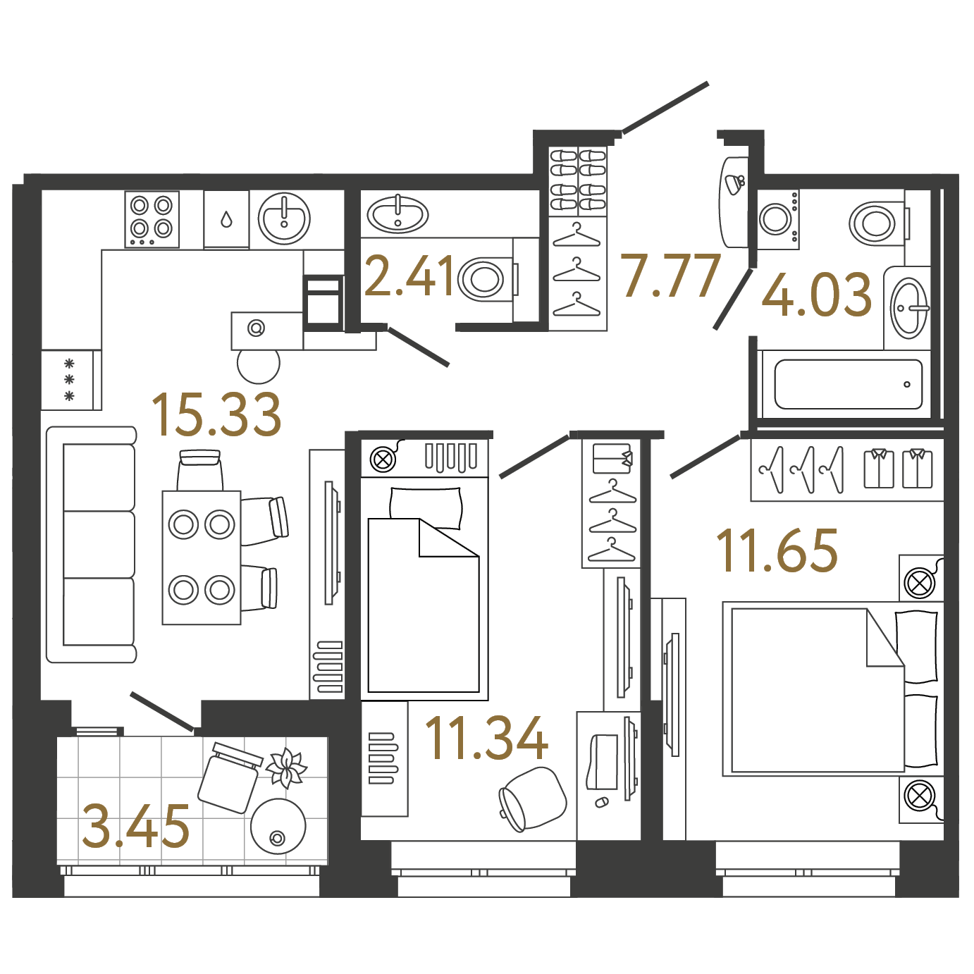 Двухкомнатные квартиры (59 квартир, 14 планировок)