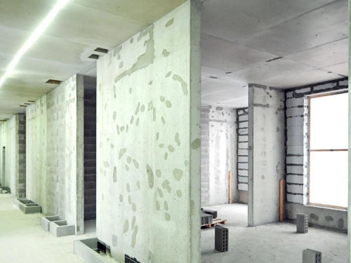 - Внутренние перегородки из стенового камня готовы на 85% в корпусе 1 и на 80% в корпусе 2.
