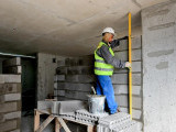 - Также продолжаем кладку внутренних стен из стенового камня, сейчас эти работы идут на этажах с восьмого по десятый.
