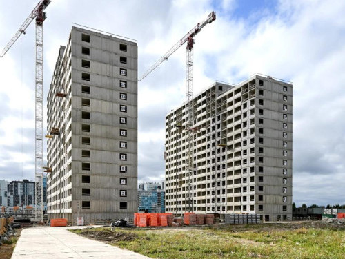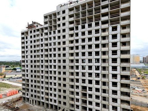 - На корпусе 1 выполнены монолитные конструкции первых пяти надземных этажей, приступили к устройству стен шестого этажа.