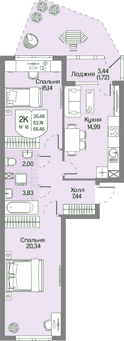 Однокомнатные квартиры (22 квартиры, 18 планировок)