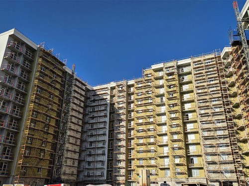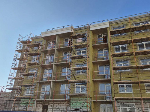 - Монтаж утеплителя на стенах здания со стороны двора секций 1, 2, 3;