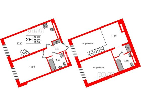 Двухкомнатные квартиры (30 квартир, 26 планировок)