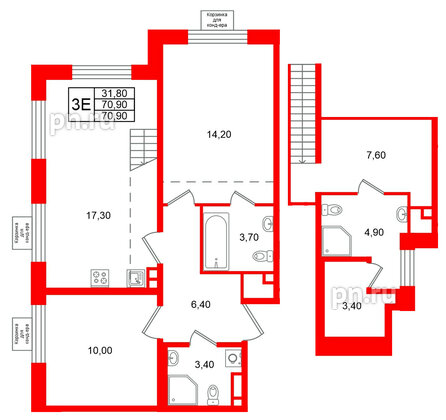 Трехкомнатные квартиры (8 квартир, 8 планировок)
