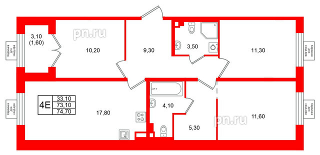 Трехкомнатные квартиры (6 квартир, 6 планировок)