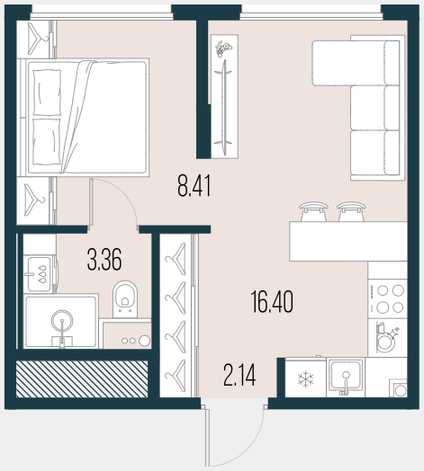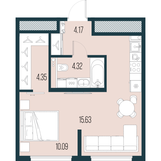 Однокомнатные квартиры (3 квартиры, 3 планировки)