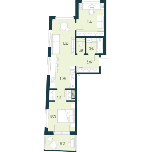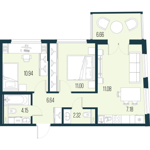 Двухкомнатные квартиры (3 квартиры, 3 планировки)