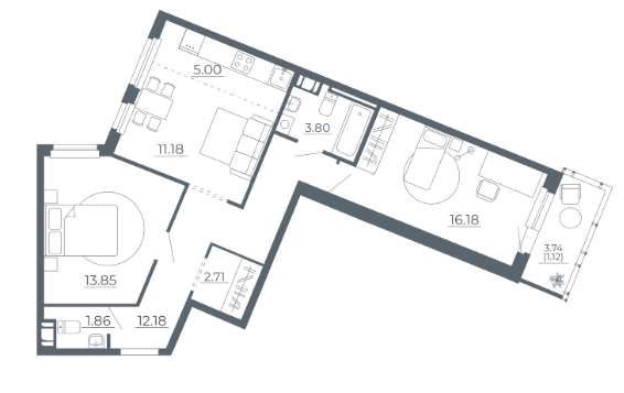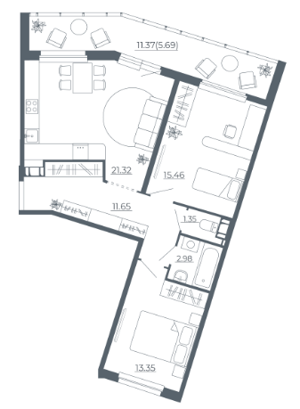 Двухкомнатные квартиры (3 квартиры, 3 планировки)