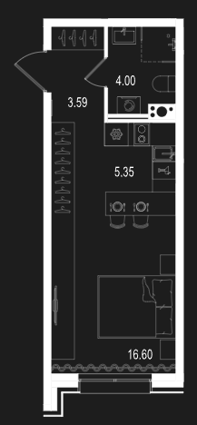 Однокомнатные квартиры (1 квартира, 1 планировка)