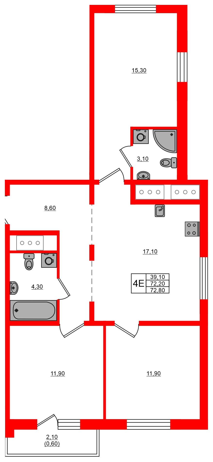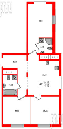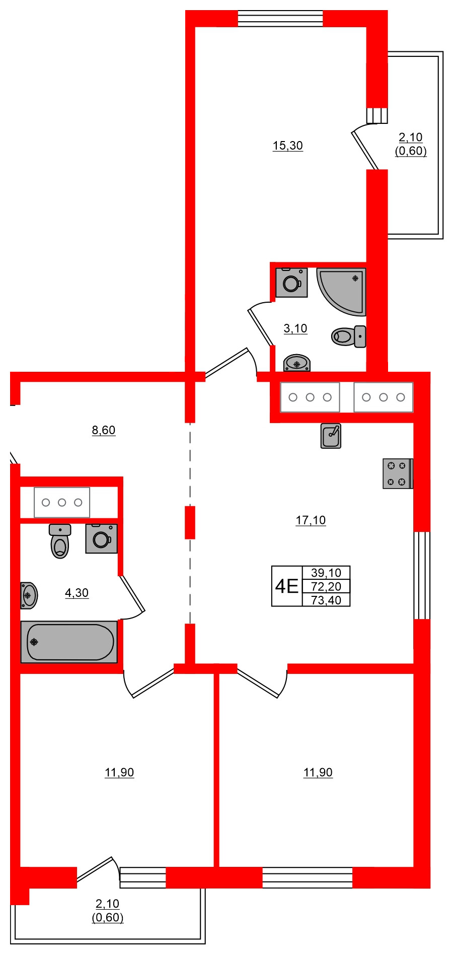 Трехкомнатные квартиры (3 квартиры, 3 планировки)