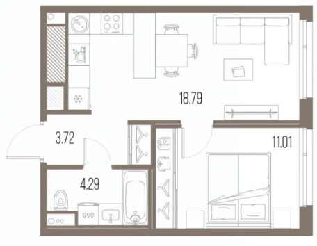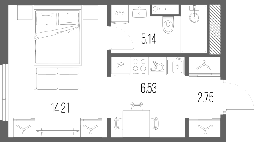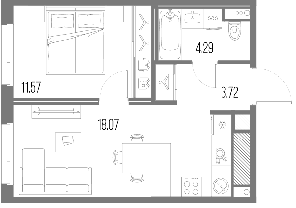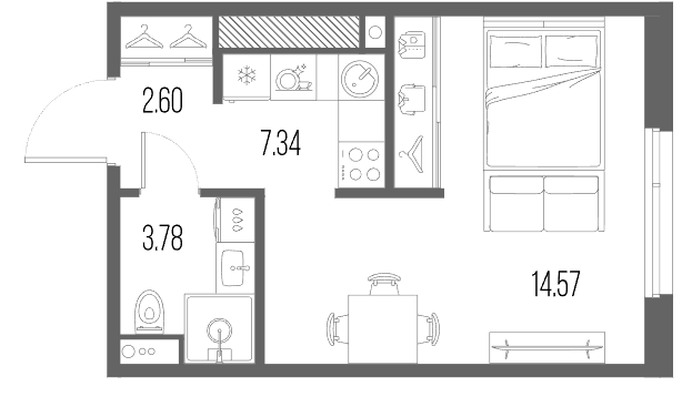 Студия (9 квартир, 4 планировки)