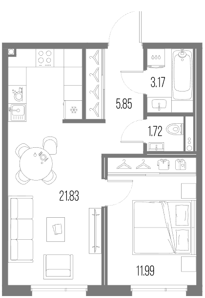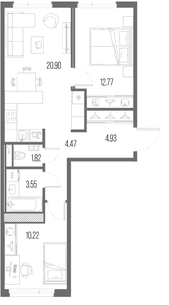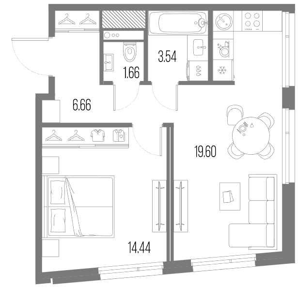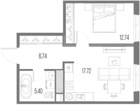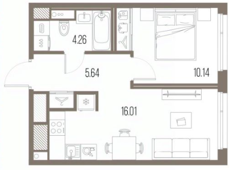 Однокомнатные квартиры (51 квартира, 16 планировок)