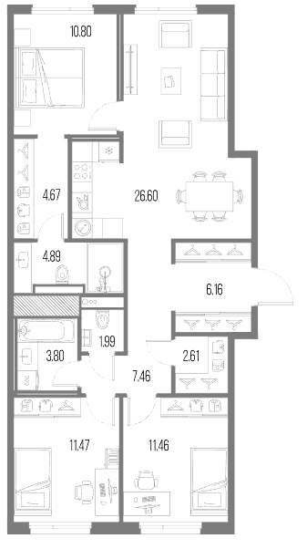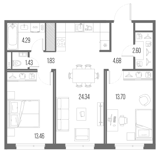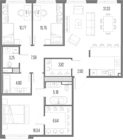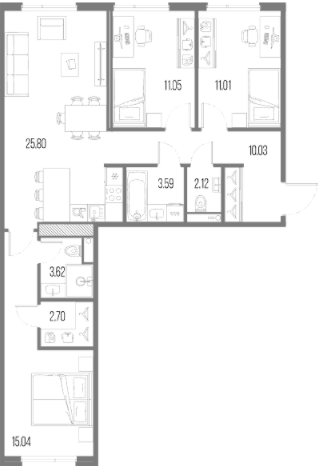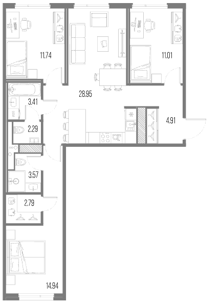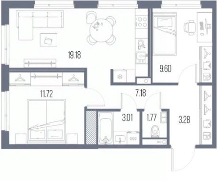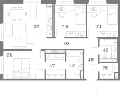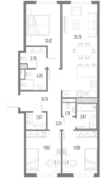 Трехкомнатные квартиры (84 квартиры, 13 планировок)