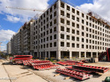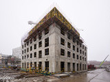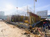 - В корпусе 5 в первом блоке выполняются монолитные работы по устройству стен и перекрытий на уровне 5, 6 и 7 этажей, во втором блоке возводятся монолитные стены 9 этажа, в блоке 3 монолитные работы идут на уровне 8 этажа.